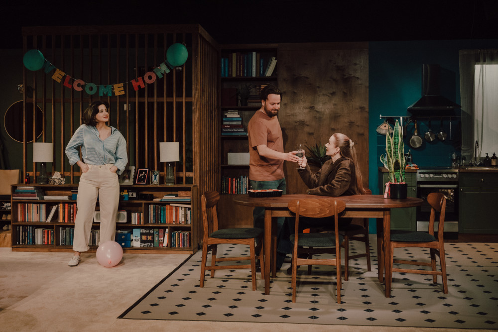 Spektakl próbuje też otworzyć kilka dodatkowych wątków, które na pierwszy rzut oka zapowiadają się bardzo obiecująco – szczególnie relacja z synem. Tam naprawdę zaczyna się dziać coś ciekawego, pojawia się napięcie, emocje, nawet potencjał na osobną, mocną historię. Problem w tym, że ten wątek nagle się urywa. Jakby ktoś w połowie zdania zamknął temat i poszedł dalej. Zostaje niedosyt i poczucie, że coś ważnego zostało tylko zasygnalizowane, ale nie przepracowane do końca. I to trochę zawodzi, bo w spektaklu, który tak mocno operuje na relacjach, właśnie takie niedomknięcia najbardziej rzucają się w oczy.