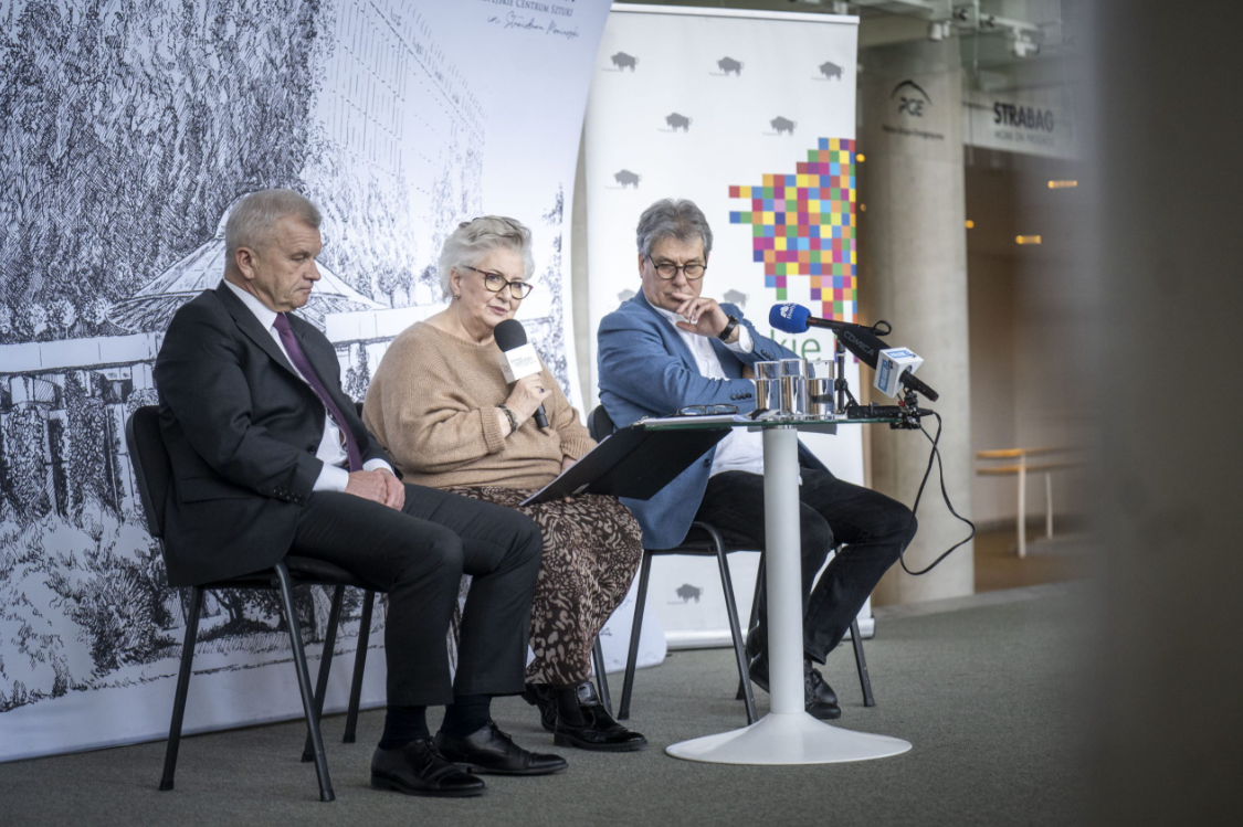 O planach instytucji podczas dzisiejszej (4.03) konferencji prasowej mówili: prof. Violetta Bielecka, dyrektor OiFP, Członek Zarządu Województwa Podlaskiego Jacek Piorunek oraz prof. Mirosław Jacek Błaszczyk, konsultant muzyczny OiFP.