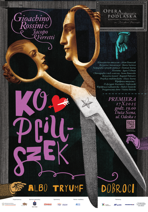 Najważniejszym wydarzeniem października będzie premiera opery Kopciuszek albo tryumf dobroci Gioachina Rossiniego. To pełna humoru, wdzięku i muzycznych fajerwerków opowieść, która – choć inspirowana baśnią Charlesa Perraulta – pozbawiona jest magicznych rekwizytów i pantofelka. Reżyserka Maria Sartova przenosi akcję w powojenne lata pięćdziesiąte XX wieku, tworząc kontrast między szarą codziennością a kolorowym światem marzeń Angeliny: – To nie jest opowieść o słabości i krzywdzie, ale o sile i mądrości dziewczyny, która swoją dobrocią potrafi zmieniać rzeczywistość – podkreśla M. Sartova. W głównych rolach zobaczymy Zuzannę Nalewajek i Aleksandrę Opałę (Kopciuszek) oraz Łukasza Baltazara Kózkę i Sebastiana Macha (Książę). Premiera na Dużej Scenie OiFP przy ul. Odeskiej już 17 października. Kopciuszka będzie można oglądać do połowy grudnia – zaplanowanych jest 10 spektakli. Więcej o kulisach produkcji w materiale partnera premiery, portalu Orfeo: https://orfeo.com.pl/rozmowa-z-maria-sartova/ – z Marią Sartovą rozmawiał Tomasz Pasternak.