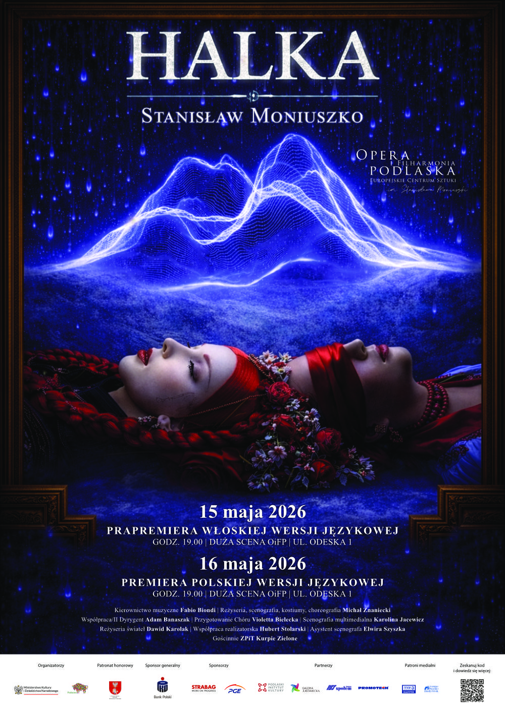Spektakl przygotowuje ceniony reżyser Michał Znaniecki, który na scenie Opery i Filharmonii Podlaskiej wyreżyserował m.in. Wesołą wdówkę F. Lehára czy Vesper G. Guthmana. Halka zostanie zaprezentowana w dwóch wersjach językowych – włoskiej i polskiej. Wersja włoska otwiera partyturę Moniuszki na międzynarodowy kontekst i wydobywa ponadczasowy wymiar opery, natomiast przedstawienie w języku polskim pozwoli usłyszeć dzieło w jego oryginalnym brzmieniu. Kierownictwo muzyczne nad spektaklem objął Maestro Fabio Biondi – wybitny dyrygent i skrzypek, twórca i dyrektor artystyczny zespołu Europa Galante, który Moniuszkę stawia na równi z Bellinim, Donizettim i Verdim. W obsadzie Halki znajdzie się grono znakomitych solistów, m.in. Marcelina Román, Natalia Rubiś, Matheus Pompeu, Paweł Skałuba czy Adrian Domarecki. Usłyszymy Orkiestrę i Chór Opery i Filharmonii Podlaskiej, a obok artystów Baletu OiFP gościnnie w spektaklu wystąpi także Zespół Pieśni i Tańca Kurpie Zielone.