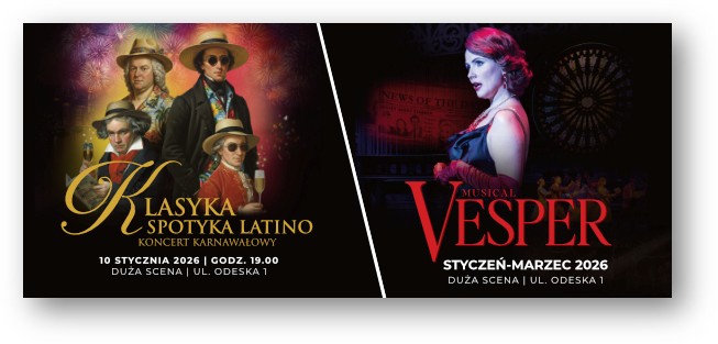 Centralnym punktem będzie powrót musicalu Vesper Gary’ego Guthmana. Vesper to poruszająca, pełna emocji opowieść inspirowana życiem Krystyny Skarbek, jednej z najbardziej niezwykłych kobiet II wojny światowej, bohaterki Wielkiej Brytanii i Francji. Od prapremiery w marcu 2025 r. spektakl na Dużej Scenie OiFP zobaczyło niemal 12 tysięcy widzów. W tym sezonie zaplanowanych jest 20 przedstawień (od stycznia do marca), w tym cztery szkolne. Spektakle będzie można oglądać już od 17 stycznia.