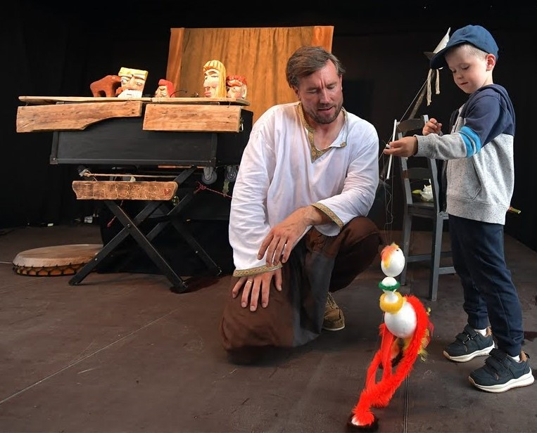 Po spektaklu aktor – w ramach teatralnego wtajemniczenia – udostępnił drewniane lalki swoim widzom. Wśród nich znalazł się pięcioletni Jasio, czyli Chłopiec z marionetką – oczywiście z tą samą lalką, którą animując śpiewał tutaj rok temu „Pieśń lalkarza” Jana Wilkowskiego. Ta lalka nie pochodziła z teatru, ale z brwinowskiego targu, na którym rodzice Jasia, już zarażonego spektaklami lalkowymi oglądanymi podczas poprzednich edycji Sceny Letniej, nabyli na jego prośbę. Lalka przedstawia kolorową pierzastą papugę i przy pomocy doczepionych sznurków daje możliwość poruszania łapkami, skrzydełkami i główką ptaka, ale teatralną lalką nie jest.