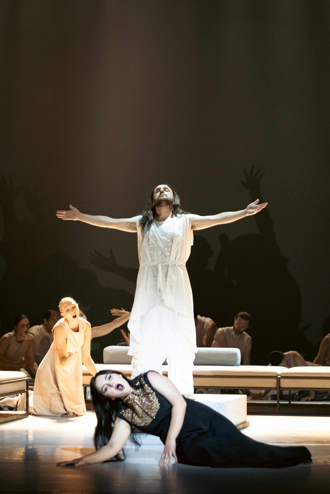 Za pulpitem dyrygenckim stanie kierownik muzyczny spektaklu, Sasha Yankevych.