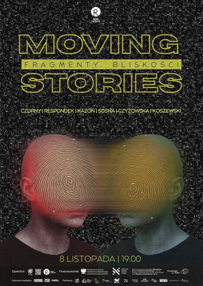 Moving Stories. Fragmenty bliskości to międzypokoleniowy projekt, oparty na warsztatach z udziałem ochotników, którzy dzielą się swoimi osobistymi doświadczeniami i tekstami romantycznymi, stanowiącymi tematyczną i fabularną treść, wokół której budowana jest sceniczna opowieść o bliskości i kulturowych wzorcach, z których nieświadomie czerpiemy, budując romantyczne relacje. To opowieść o pragnieniu baśni, w której niestety zawsze pojawiają się potwory i złe zaklęcia. To wreszcie historia o tym, jak język i słowa wypowiadane w intymnych relacjach, mogą zatruć jabłko.