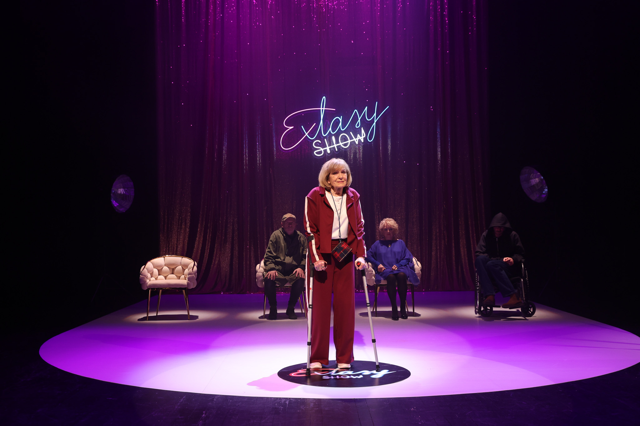 Czy śmierć może być towarem na sprzedaż? Owszem, zwłaszcza jeśli udział w telewizyjnym show jest jedyną drogą do przedłużenia sobie życia ponad ustawowe zapisy. Wiek, nowotwór, Parkinson czy Alzheimer – nie ma to znaczenia. Mamy rok 2045. Najpierw test przeprowadzony gdzieś za zamkniętymi drzwiami. Potem długie oczekiwanie na nagranie, nerwy i stres związane z niepewnymi wynikami, od których wszystko zależy. Tak się zaczyna „Extasy Show” – obserwujemy czworo uczestników, którzy za kulisami czekają w trwożnym milczeniu. Nie mogąca opanować drżenia Ewa Decówna wspiera się na kulach, elegancka Magdalena Zawadzka ściska nerwowo dłonie, ukryty pod kapturem Fabian Kocięcki siedzi na inwalidzkim wózku, a nabuzowany energią Andrzej Pieczyński wierci się bezustannie na dizajnerskim krześle. Atmosfera napięcia jest nie do zniesienia. Trzeba się odezwać, zagadać, przedstawić, zapytać innych o powody uczestnictwa w tym jarmarku śmierci. Bo w przypadku niepowodzenia czeka ich publiczna egzekucja. Zastrzyk śmierci, niczym ostatni pocałunek w takt ulubionej melodii. Od wyniku można się niby odwołać, można też znaleźć kogoś, kto przyjmie „nagrodę” za zwycięzcę, można…