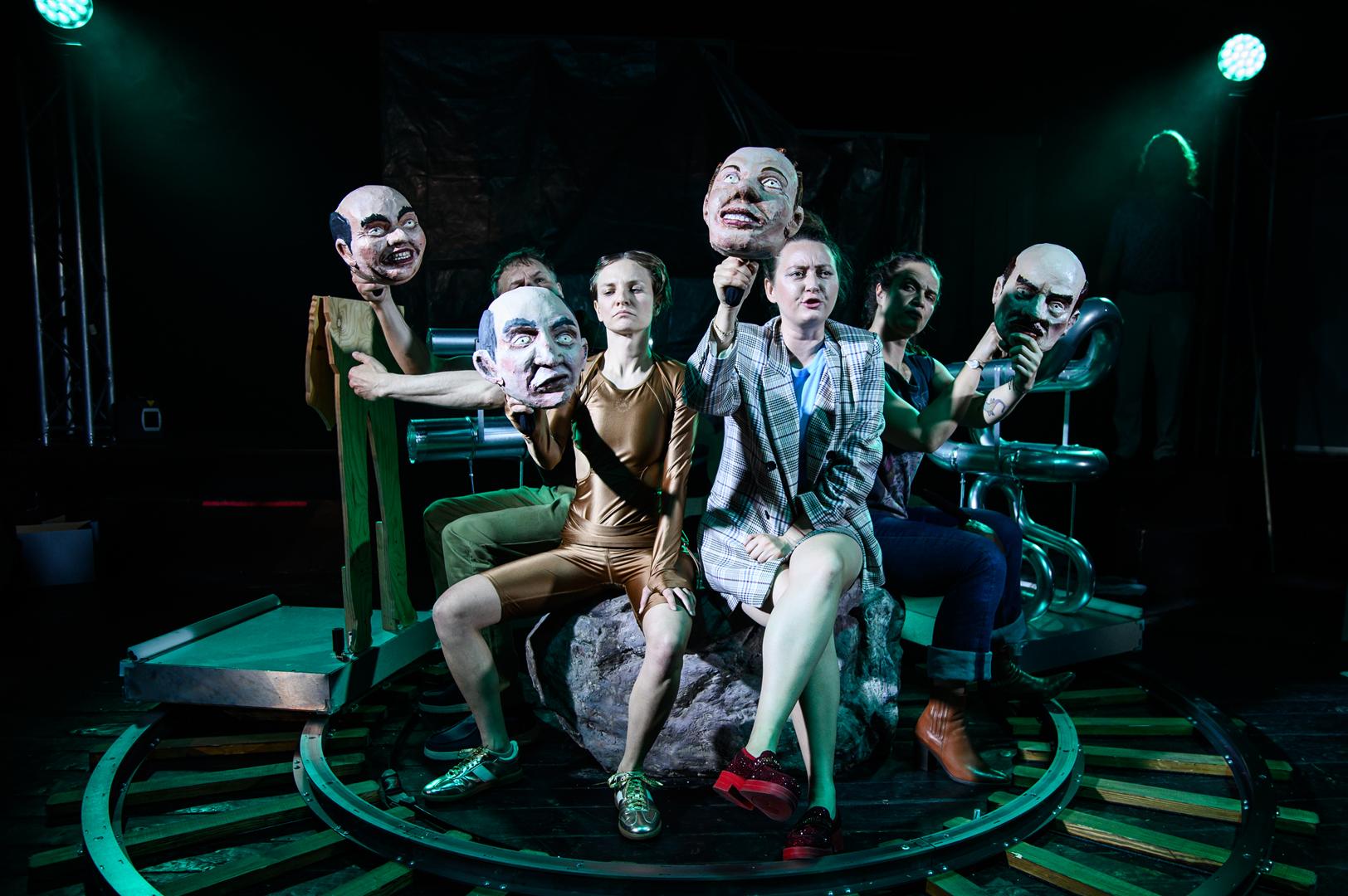 Niemal całą scenografię pomysłu Joanny Załęskiej tworzy zamknięty w okrąg tor kolejowy, po którym jeżdżą wynalazki kojarzące się z początkiem XX wieku. W środku torowiska tkwi duży kamień. Być może filozoficzny, ale wobec tego, co zobaczyłem w „Mózgu”, głowy za to bym nie dał.