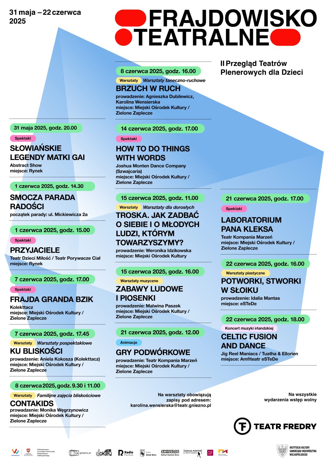 II Przegląd Teatrów Plenerowych dla Dzieci „Frajdowisko Teatralne”, organizowany przez Teatr im. Aleksandra Fredry w Gnieźnie, zaczyna się 31 maja a kończy 22 czerwca.