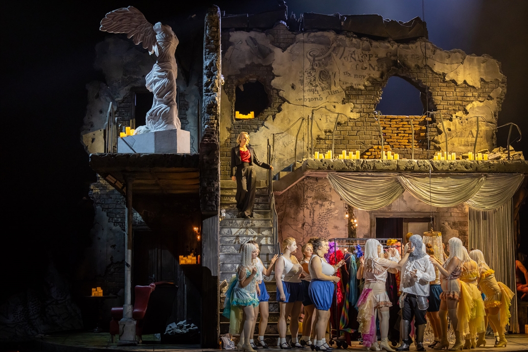 Do pewnego stopnia tak się właśnie stało - z utworu usunięto partie mówione, a dość błahą w gruncie rzeczy historię konkurów o rękę owdowiałej Hrabiny (uwikłanej w nieszczęśliwy trójkąt miłosny) reżyserka Karolina Sofulak stara się zamienić w niemalże alegoryczną opowieść o nieszczęsnych losach kobiet i naszego, równie mało szczęsnego, kraju. "Hrabina" doczekała się nawet sugerującego to wprost podtytułu - "Sen Niepodległej Pol (s)ki". Za odwagę podjęcia tego wyzwania należą się niewątpliwie brawa, zwłaszcza że w wielu aspektach ta koncepcja broni się scenicznie - a o to przecież chodzi. Niemniej nie opuszcza mnie wrażenie, że ta inscenizacja jako całość jest po prostu niespójna i - co gorsza - w natłoku sprzecznych sygnałów staje się dla przeciętnego widza nieczytelna.