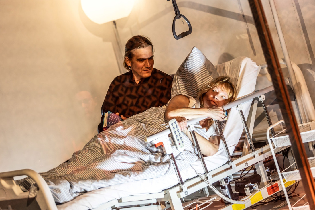 Na scenie narastająca demencja, splata się z kłamstwem, fantazją, marzeniami, złośliwą prowokacją. Zwłaszcza w postaci Ewy kreowanej genialnie przez Małgorzatę Trofimiuk. Aktorka buduje fascynującą postać o bardzo niejednoznacznej osobowości; nierozumianej zupełnie przez dość prostacką mentalnie opiekunkę, która przypina jej łatkę opętanej.