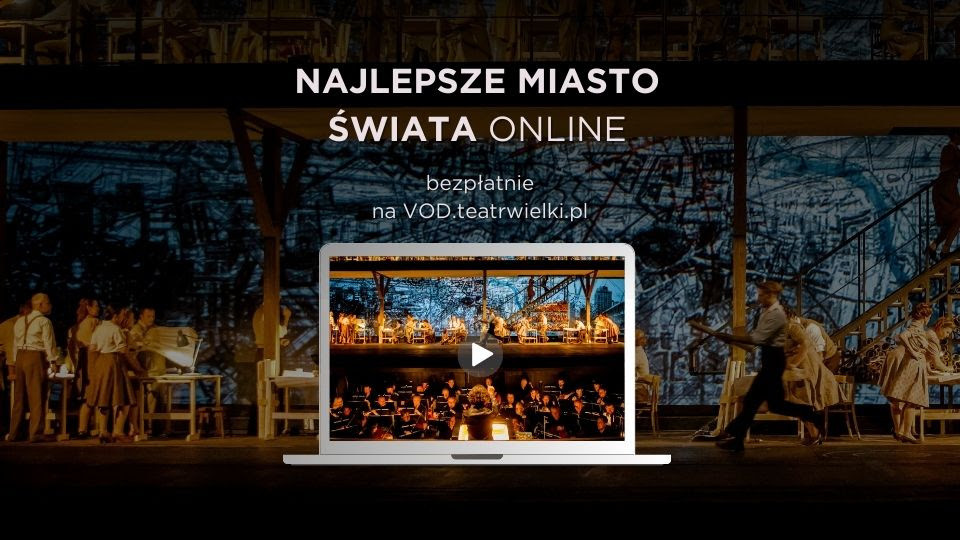 Od 5 grudnia 2025 o godz. 19.00 na vod.teatrwielki.pl pojawi się jedno z najgłośniejszych wydarzeń sezonu – Najlepsze miasto świata. Opera o Warszawie. Podczas pięciu przedstawień opera zgromadziła w TW-ON komplet publiczności (8500 widzów), a teraz trafia do widzów w całej Polsce i za granicą.