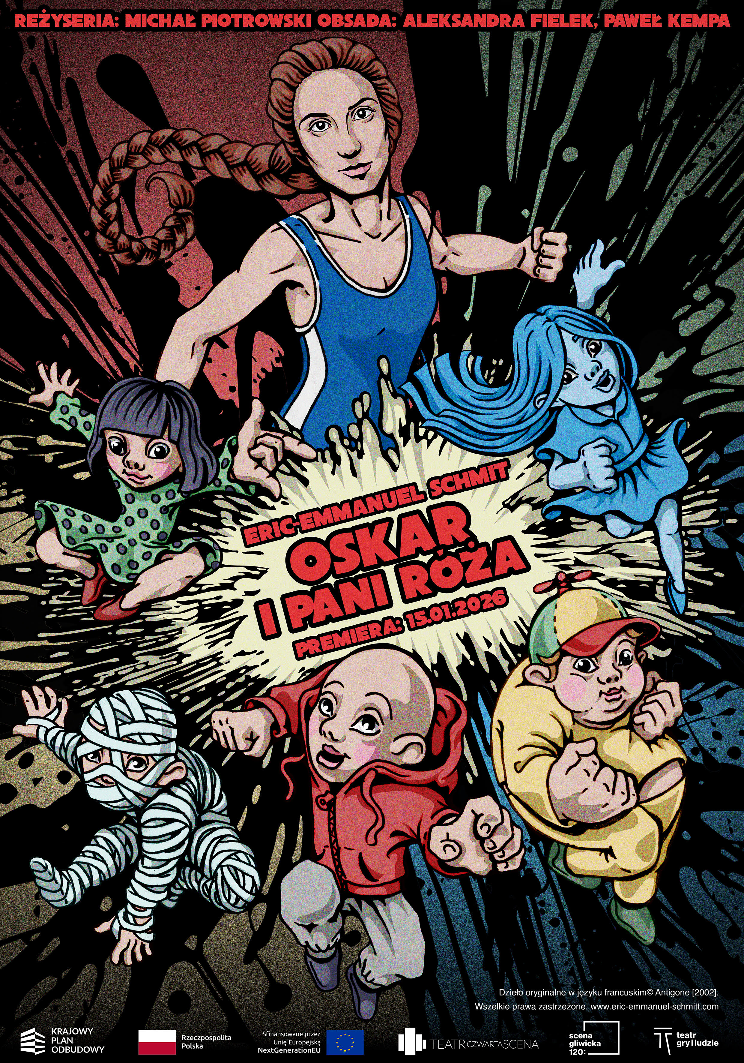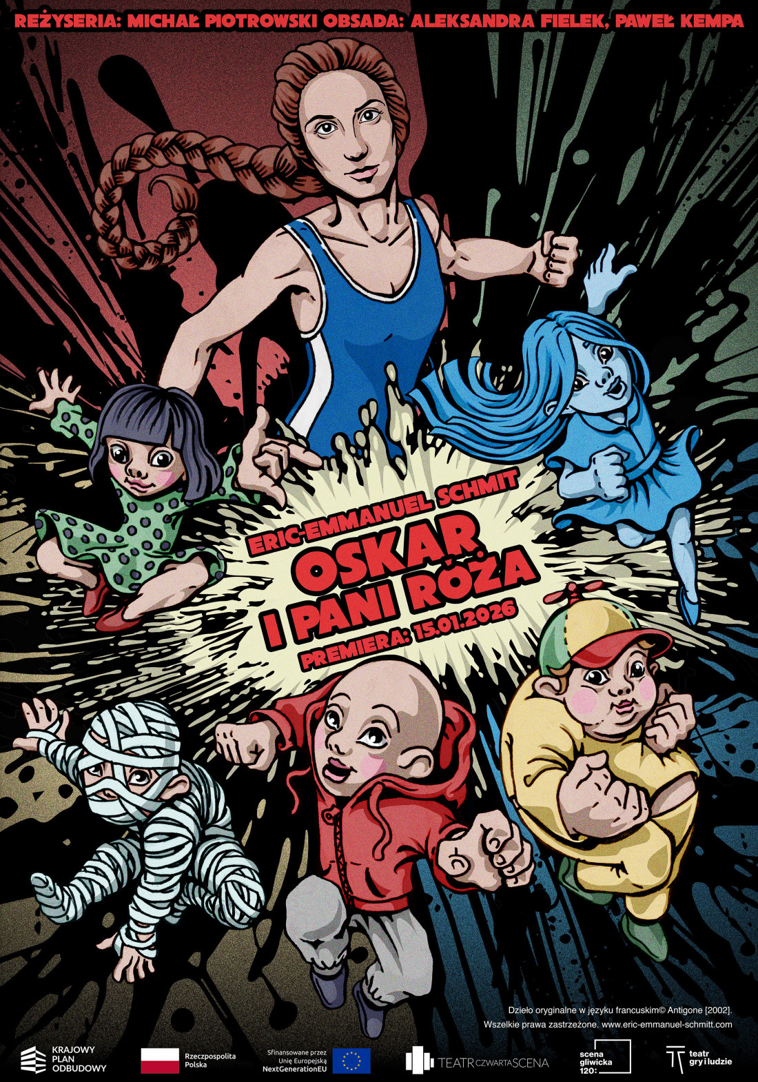 Pełna humoru i ciepła opowieść o 10-letnim, zawadiackim Oskarze, który choć mieszka w szpitalu, nie traci pogody ducha ani ciekawości świata. Dzięki Pani Róży – szpitalnej salowej – odkrywa nieznane wcześniej pokłady własnej wrażliwości, duchowości oraz fascynacji wrestlingiem. Spektakl w przystępny sposób porusza tematy sensu życia, dorastania i przemijania, skłaniając do refleksji zarówno młodszych, jak i starszych widzów. Przeznaczony dla dzieci od 9. roku życia oraz dorosłych.