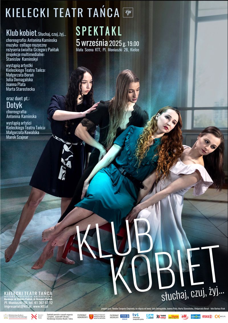 Kielecki Teatr Tańca serdecznie zaprasza na spektakl „Klub kobiet. Słuchaj, czuj, żyj” w choreografii Antoniny Kaminskiej. Prezentacja 5 września 2025 o 19.00 na Małej Scenie KTT.