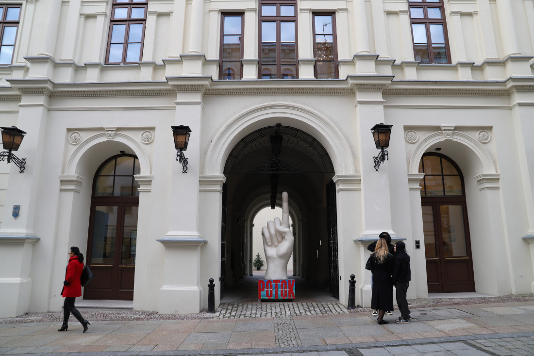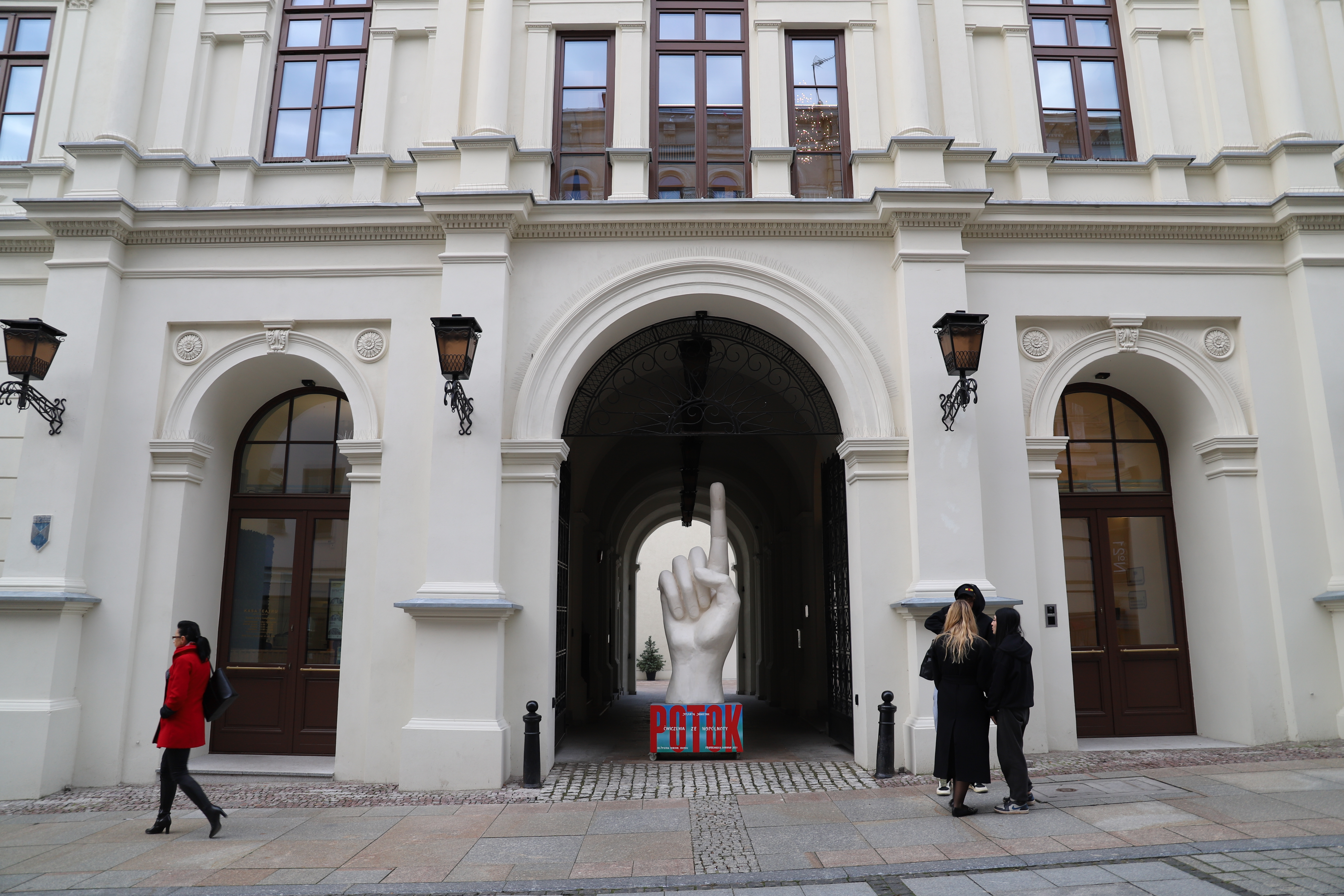 Tymczasem prezentujemy jeden z obiektów, który znajdzie się na scenie podczas przedstawienia. Póki co, biała dłoń stanęła w bramie Teatru, zwracając uwagę przechodniów na Teatr, jego sprawy i zapraszając na nowy spektakl laureatów Paszportów Polityki, twórców, m.in. kieleckiej "Carycy Katarzyny" i całego tryptyku o wielkich kobietach historii.