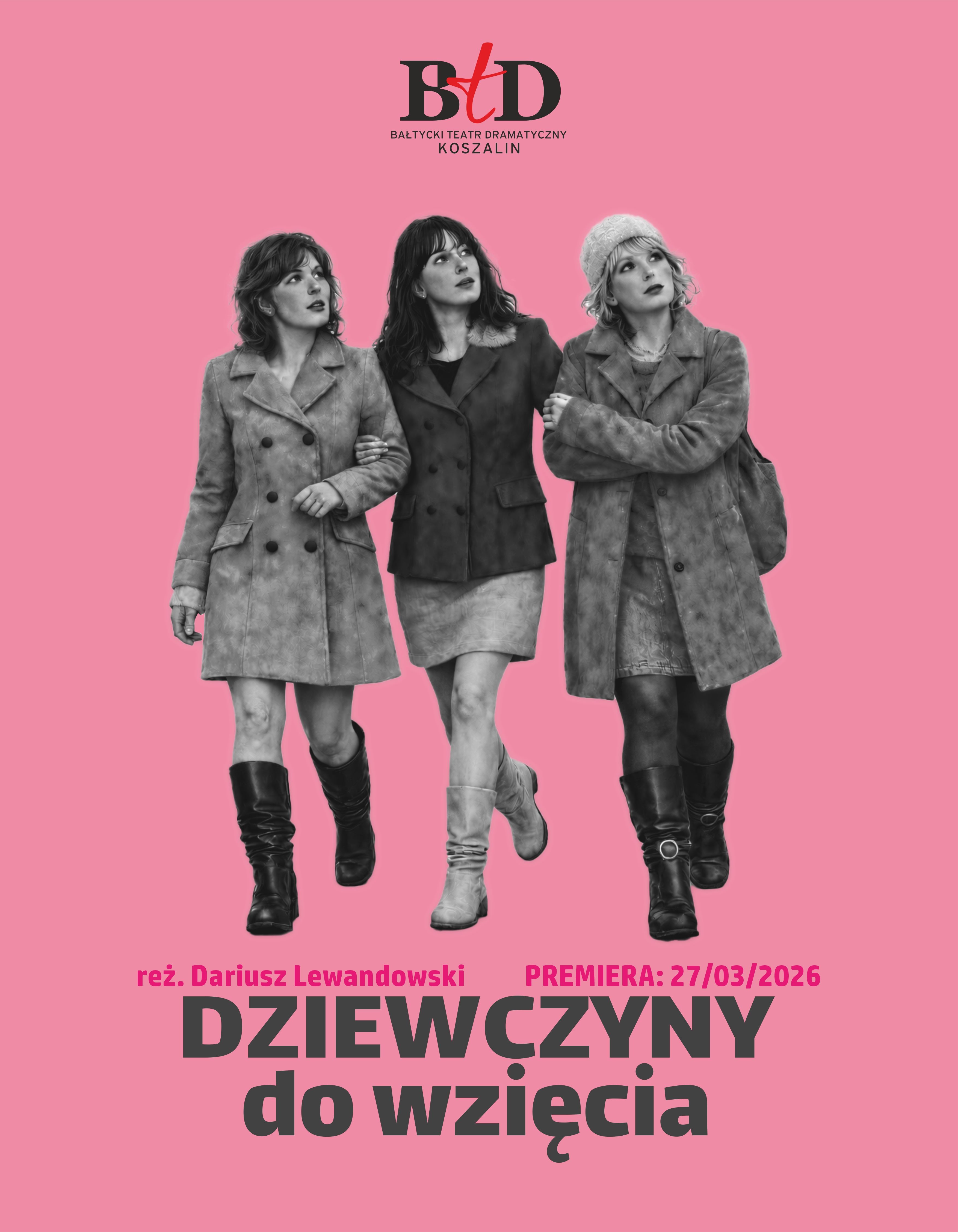 W Międzynarodowy Dzień Teatru, 27 marca, o godz. 19:00 na Dużej Scenie Bałtyckiego Teatru Dramatycznego im. Juliusza Słowackiego w Koszalinie odbędzie się premiera spektaklu „Dziewczyny do wzięcia” w reżyserii Dariusza Lewandowskiego. To teatralna adaptacja kultowego filmu o tym samym tytule w reżyserii Janusza Kondratiuka.
