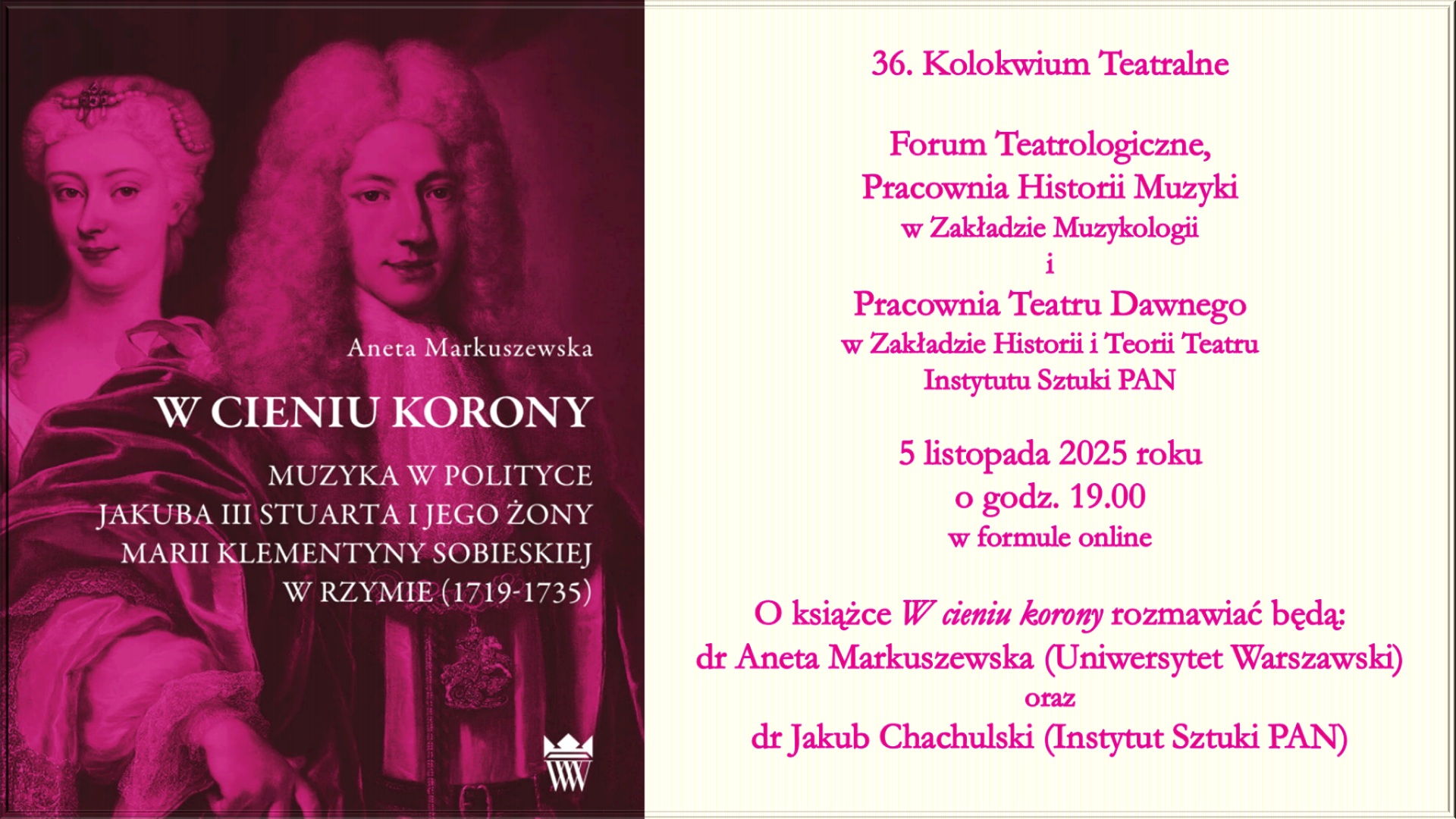 Forum Teatrologiczne, Pracownia Historii Muzyki w Zakładzie Muzykologii oraz Pracownia Teatru Dawnego w Zakładzie Historii i Teorii Teatru Instytutu Sztuki PAN zapraszają do udziału w 36. Kolokwium Teatralnym, które odbędzie się w środę 5 listopada