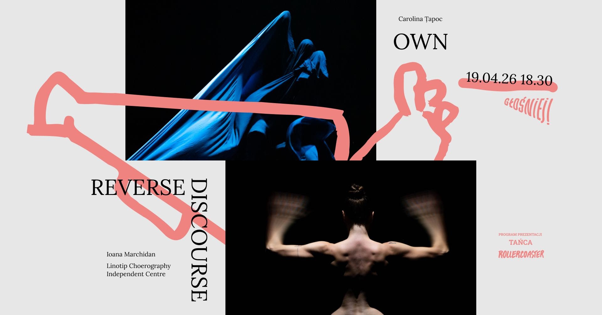 „Reverse discourse” to odwrócona wypowiedź. Odpersonalizowana, obnażona, krucha i intymna. To performans o polityce ciała, w którym Ioana Marchidan wprowadza pęknięcie w zbiorowej pamięci cielesnej. Wydobywa na powierzchnię głęboko zakorzenione gesty, by je rozbroić, wytrącić z utrwalonych znaczeń i rozłożyć w procesie przejścia ku abstrakcyjnej choreografii.