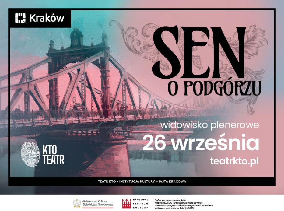 „Sen o Podgórzu” to słowno-muzyczny spektakl plenerowy przygotowany przez artystów Teatru KTO. Na scenie będzie można zobaczyć: Katarzynę Chlebny, Grzegorza Łukawskiego, Jacka Stramę, Karolinę Daniec-Franczyk, Ninę Potapowicz, Grażynę Srebrny-Rosa oraz Bartka Cieniawę. Piosenki do spektaklu napisał i dwie z nich wykona Andrzej Sikorowski. Podczas widowiska usłyszymy również zespół muzyczny Asy z Rękawki oraz Chór Kameralny Auxilium.