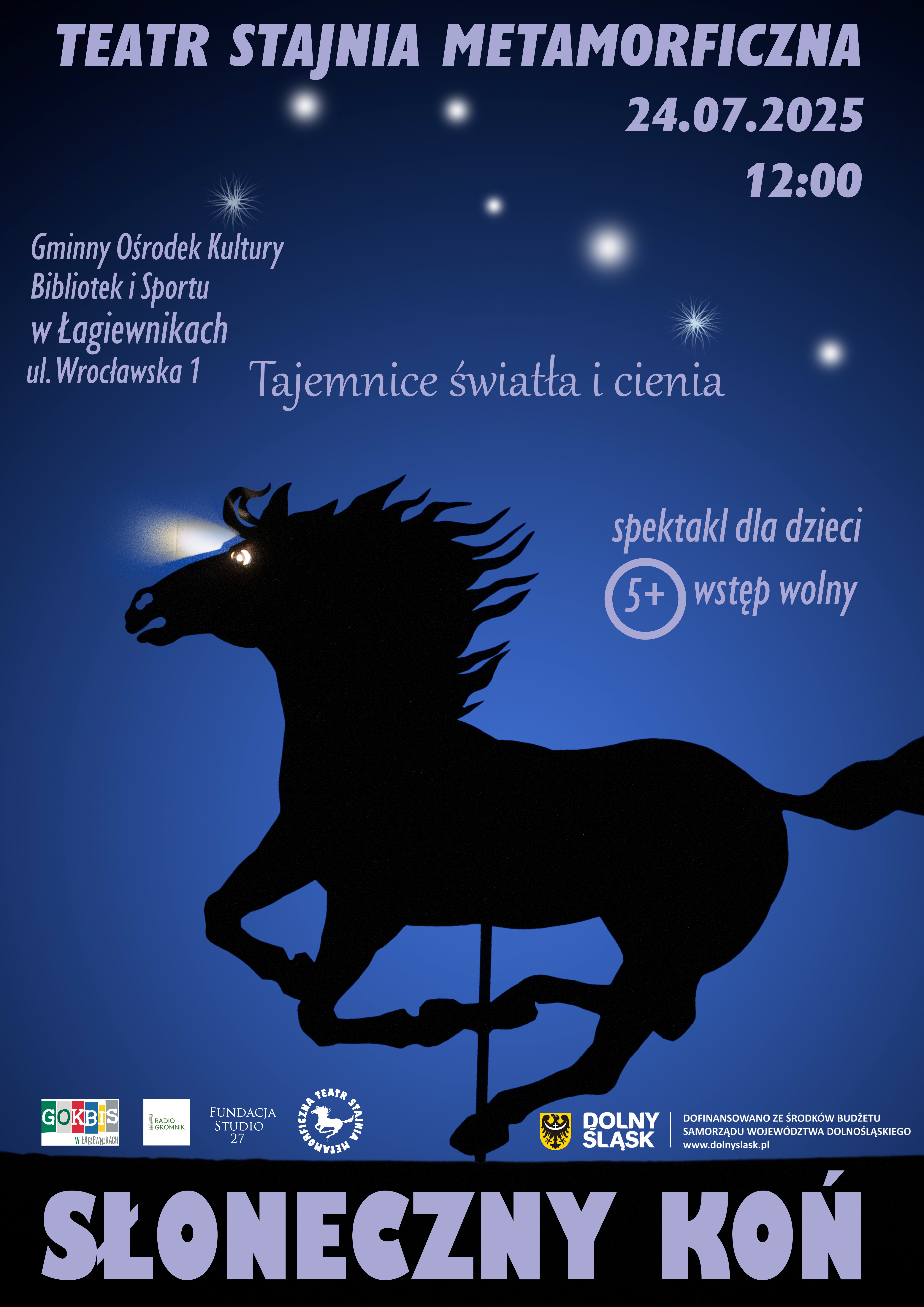 Teatr Stajnia Metamorficzna rozpoczyna projekt „Tajemnice światła i cienia”. Wakacje trwają w najlepsze, a spektakl „Słoneczny Koń” pędzi prosto z teatralnej stajni do Łagiewnik, gdzie 24 lipca o godz. 12 wystąpi dla małych i dużych dzieci. - Odkryjemy kulisy teatralnego świata i poznamy was z wybranymi postaciami, dowiecie się w jaki sposób ożywają cieniowe lalki - zapowiadają artyści.