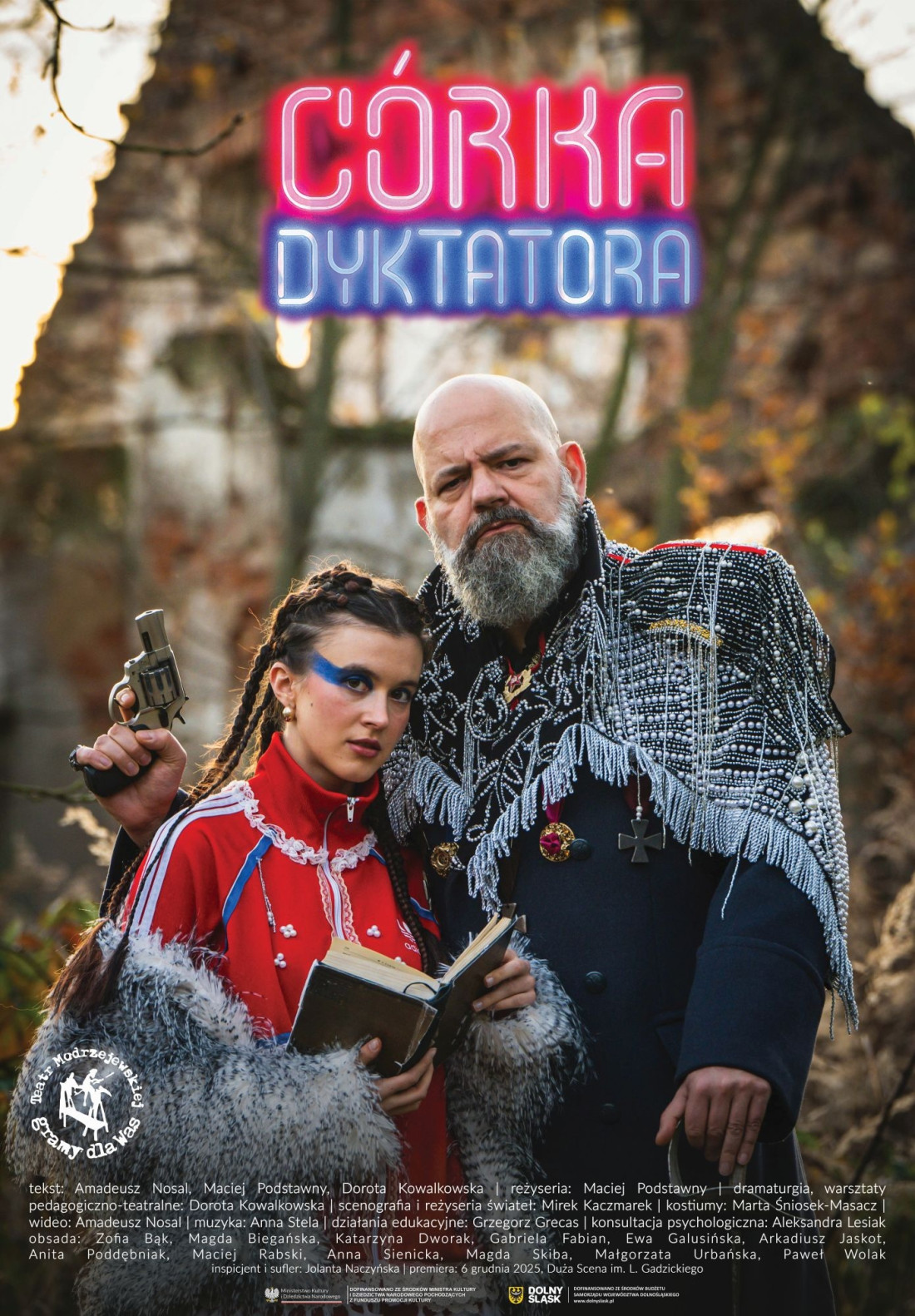 „Córka dyktatora” to familijna baśń o wciągającej fabule, która niepostrzeżenie wciąga widzów w rozmowę o polityce, władzy i cenie obojętności. Władza staje się tu polem starcia o porządek społeczny, a dorastanie – szkołą krytycznego myślenia. Dynamiczna akcja, wyraziste obrazy i humor splatają się z pytaniami, które zostają z widzem długo po wyjściu z teatru.