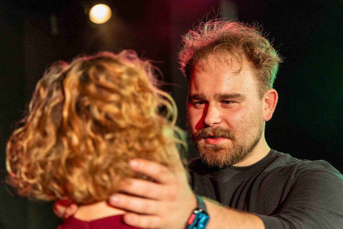 Wybór fragmentów tworzących scenariusz nie jest dla mnie do końca spójny, choć sugerując się tytułem wnioskuję, że miały to być teksty zabawne, a nawet rubaszne, jakie spodziewalibyśmy się usłyszeć z ust jowialnego bohatera Sienkiewiczowskiej trylogii. Jan Onufry to bowiem dowcipny bajarz, przebiegły, a jednocześnie rozumny, który sprytnym fortelem nieraz z opresji siebie i przyjaciół ratował. Spektakl rozpoczyna właśnie Zagłoba (Mieszko Wierciński) wspominający młode lata i wprowadzający nas w świat młodzieńczych porywów serca i namiętności, które zdobywają przychylność panny (Marta Jaszewska), ale też niezadowolenie jej ojca (Błażej Tachasiuk). Potem aktorzy wcielają się w kolejne postaci, m.in. Cześnika Raptusiewicza i Dyndalskiego w najsłynniejszej scenie pisania listu, Pana, Wójta (a właściwie Wójtową, która mówi charakterystycznym tonem głosu i nosi na szyi czerwone korale) i Plebana w nieco uwspółcześnionej przez autora scenariusza Marka Sadowskiego „Krótkiej rozmowie między trzema osobami” Mikołaja Reja czy Poetę, Rachelę i Czepca z „Wesela” Stanisława Wyspiańskiego.