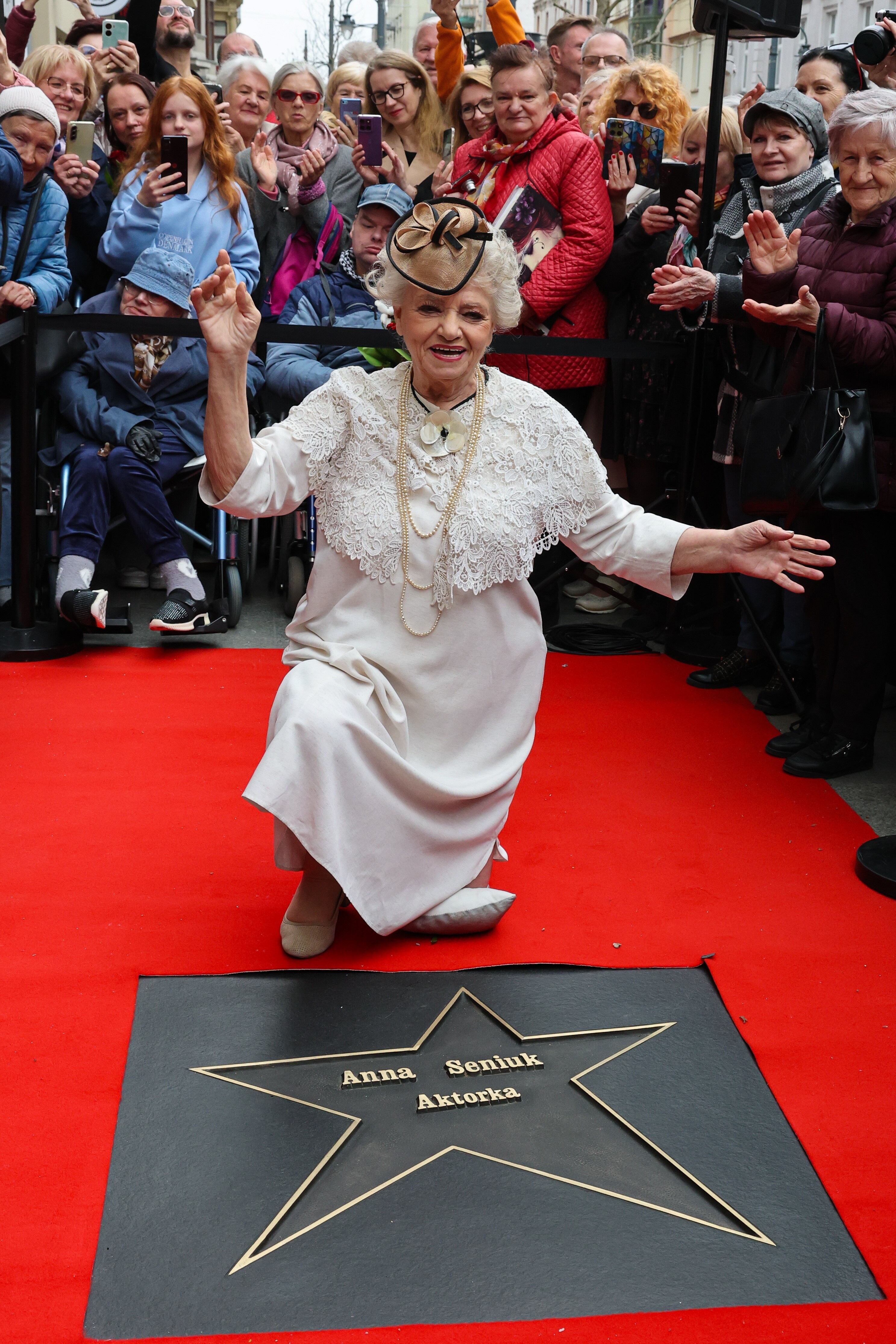 - Po osiemdziesiątce podobno można wszystko. Można się chwalić, można palnąć głupstwo, można różne rzeczy zrobić, można nawet uklęknąć, proszę Państwa. Zaraz zobaczycie tutaj - powiedziała Anna Seniuk odsłaniając gwiazdę przy wiwatach kilkuset zgromadzanych fanów.