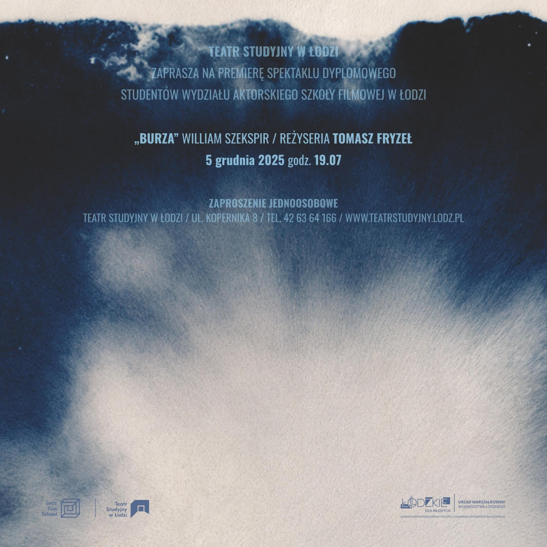 Spektakl współfinansowany z budżetu Samorządu Województwa Łódzkiego. https://teatrstudyjny.lodz.pl/spektakle/burza/