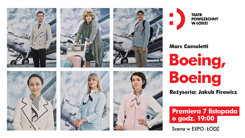 Klasyka komedii – „Boeing, Boeing” Marca Camolettiego – zostanie premierowo pokazana w hali Expo, na tymczasowej scenie remontowanego Teatru Powszechnego w Łodzi. Premierze 7 listopada towarzyszyć będzie dyskusja o komedii i farsie we współczesnym teatrze.
