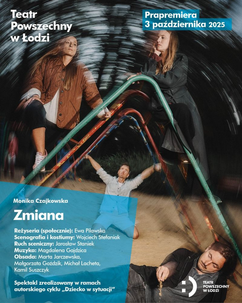 „Zmiana" to sztuka napisana specjalnie dla Teatru Powszechnego przez Monikę Czajkowską. Prapremierę wyreżyserowała Ewa Pilawska, dyrektorka sceny i autorka projektu „Dziecko w sytuacji".