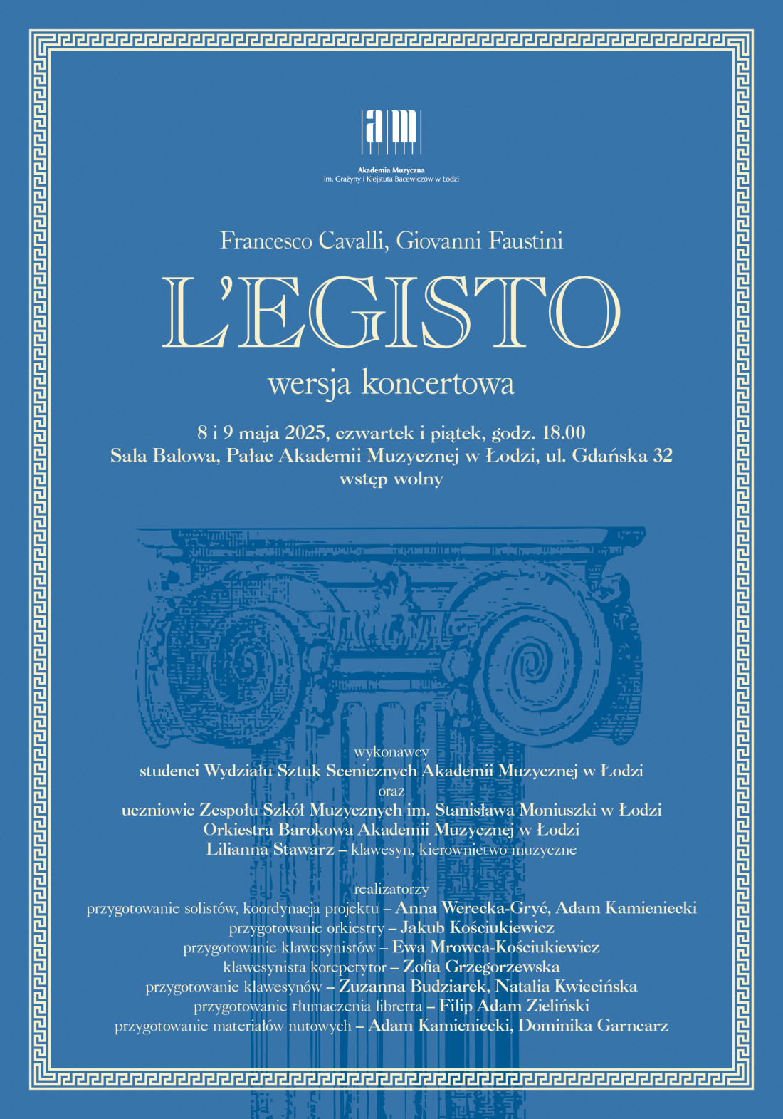 W piątek 28 listopada polska publiczność po raz pierwszy będzie miała okazję zobaczyć na scenie dzieło stworzone przez Cavallego w pierwszych dekadach istnienia gatunku operowego. „L'Egisto” swoją prapremierę miała w 1643 roku w Teatro San Cassiano w Wenecji. Twórcy łódzkiego przedstawienia zadbali o nową interpretację archaicznego libretta Giovanniego Faustiniego, dzięki czemu opera ma szansę stać się bliższa współczesnemu odbiorcy.