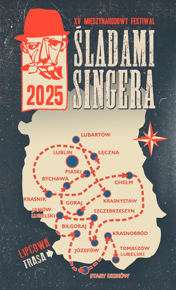 W tym roku pierwszym miastem na trasie festiwalu „Śladami Singera” będzie Lubartów. Potem artyści odwiedzą Krasnystaw, Goraj, Bychawę, Piaski, Łęczną, Kraśnik, Chełm, Józefów, Szczebrzeszyn, Janów Lubelski, Biłgoraj, Stary Dzików, Krasnobród, Tomaszów Lubelski. Festiwal zakończy się 26 lipca w Lublinie, gdzie odbywać się będzie wtedy festiwal sztuki cyrkowej „Carnaval Sztukmistrzów”.