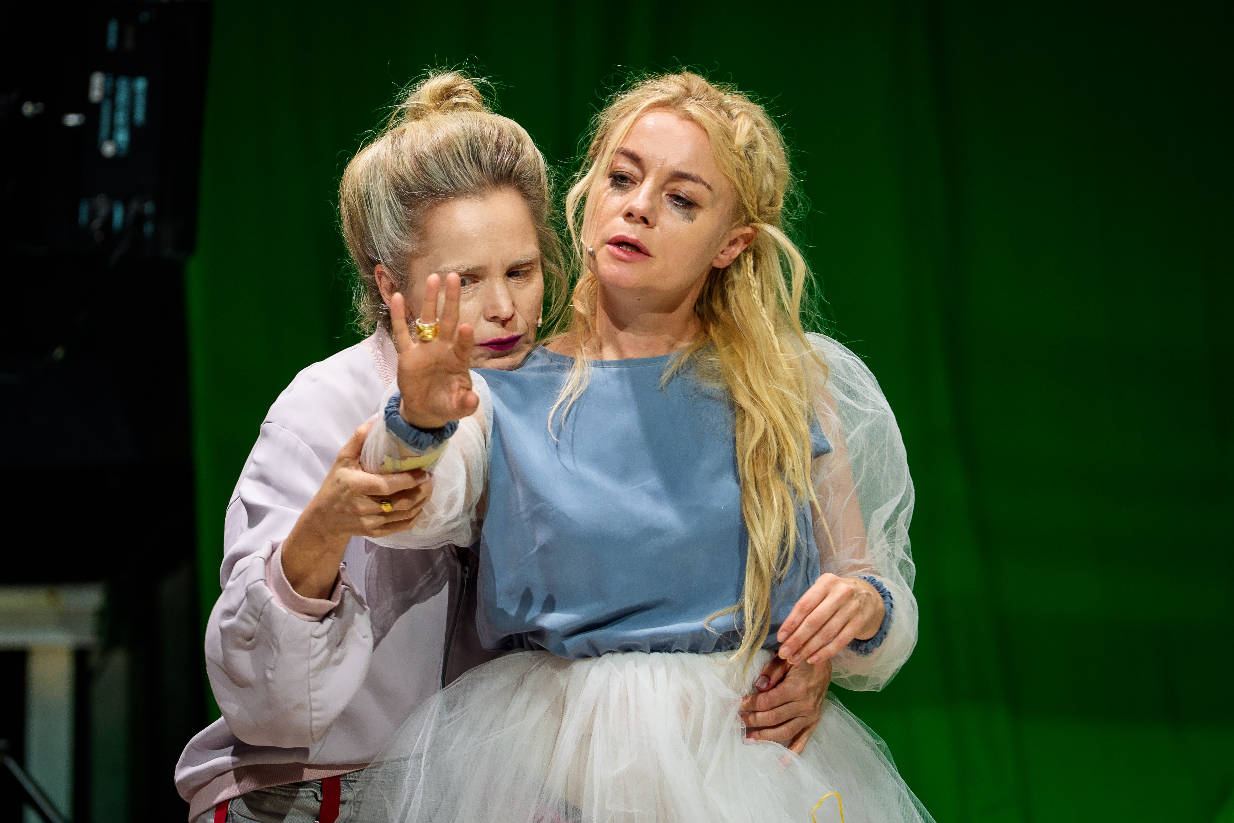 „Opowieść zimowa” to jeden z późniejszych dramatów Szekspira, łączący elementy tragedii, komedii i baśni. Historia zazdrości Leontesa, króla Sycylii, który niesłusznie oskarża swoją żonę Hermionę o zdradę, prowadzi do rozpadu rodziny, cierpienia i ostatecznie próby odkupienia. Pamela Leończyk, znana z eksperymentalnego podejścia do teatru, przenosi tę opowieść w przestrzeń współczesnej psychoterapii. Tym samym reżyserka konsekwentnie eksploruje temat traumy w swojej twórczości.