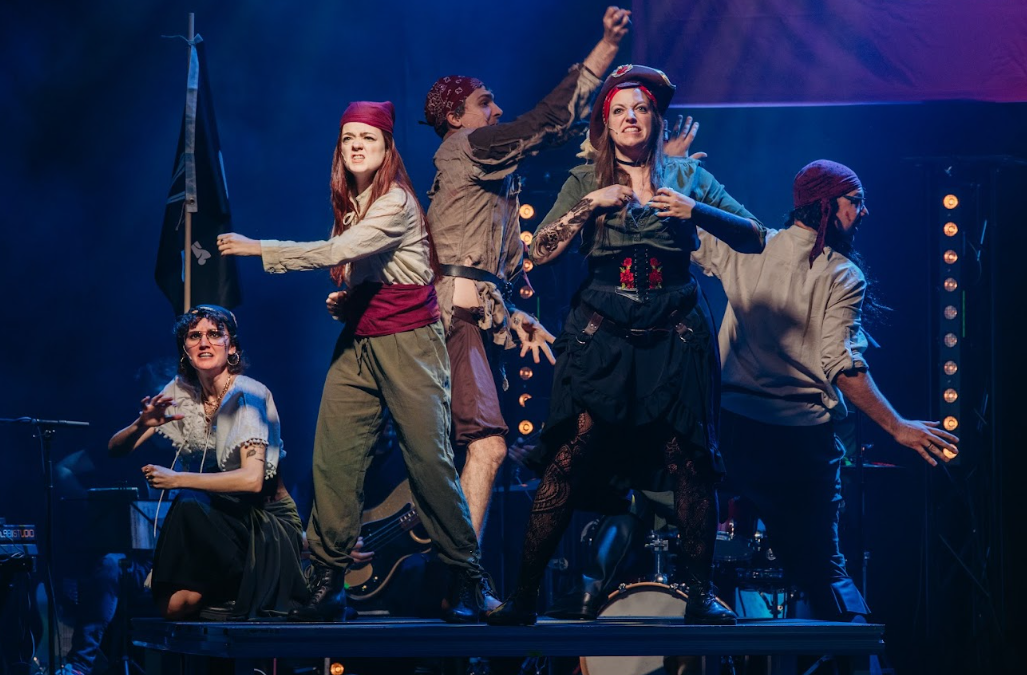 Festiwal zakończył się Ostatnim Abordażem, reżyserowanym przez Tomasza Marcinko. Częściowo przygotowany spektakl miał opowiadać o dwóch zwaśnionych grupach piratów ścigających się do skarbu. Było kilka przyjemnych zabiegów wizualnych. Oprócz kostiumów spodobał mi się pomysł z flagami symbolizującymi statki, lampki (które jednak były wprowadzone tylko na jedną scenę i potem niewykorzystane) oraz srebrne konfetti jako strzały z armaty. Jednak mimo tego w większości scen nie było czuć, że jesteśmy na morzu i oglądamy piracką historię. Początek był mocno chaotyczny. Ponownie – sceny, które miały zbudować relacje i ustawić stawkę historii, były puste. Choć rozumiem zabieg wizualny pierwszych scen, czyli granie na dwóch platformach, które miały nam unaocznić podział załogi na dwa statki, uważam, że był jednak nietrafionym rozwiązaniem. Ściśnięcie po 5 osób na niewielkich platformach uniemożliwiło im dobrą komunikację, co mogło wpłynąć na słaby początek spektaklu. Później było już nieco ciekawiej, pojawiło się kilka interesujących postaci jak kapitanka “Zefira” – Beata (Beata Bebe Różalska), kucharz Janek (Janek Malinowski) czy Majtek (Mateusz Płocha), a na drugim statku, “Krwawej Bryzie”, kapitan Arturro (Artur Jóskowiak), majtek kochający zwierzaki (Wojciech Tremiszewski) czy pirat zakochany w dziewczynie z “Zefira” (Michał Majkel Iwanicki). Najciekawiej zrobiło się, gdy aktorzy zaczęli przedstawiać miłosną historię dwójki kapitanów, a najlepsze sceny to rodzinne rozmowy – między parą kapitanów i ich córkami (w rolach córek Hania Markiewicz, Agnieszka Szałkowska). Były prawdziwe i emocjonalne. Szczególnie miło było widzieć Artura Jóskowiaka w szczerych relacjach z dorastającymi córkami, a wzięcie ich na koniec obu na ręce rozczuliło. Jak zawsze nietuzinkowa postać kobieca grana przez Beatę Różalską dodawała życia historii. Niestety oprócz tego, było dużo chaosu, nieuważnosci i niechlujności. Wątki były gubione, a historie nielogiczne. Do irytacji doprowadzało mnie rozpoczynanie scen wyimkami z dziennika pokładowego, gdzie daty i przemijające dni nie miały żadnego odzwierciedlenia w osi czasu oglądanej historii. Następnym razem warto się zastanowić, czy reżyserowany spektakl dla mieszanego festiwalowego składu to najlepszy pomysł. Bez wystarczającej ilości prób i testowania pomysłów może się okazać, że forma zje historię i pozostanie tylko dryfowanie na powierzchni, by nie utonąć.