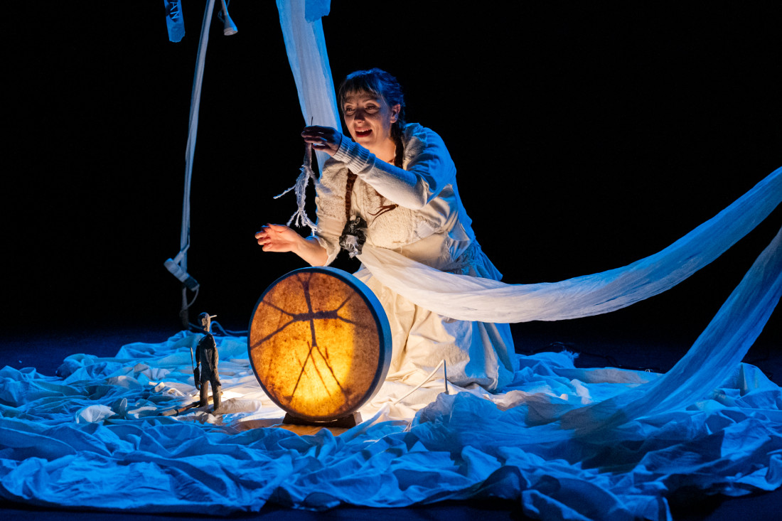 Uruk Aranak jest rzeczywiście spektaklem 6+, dla którego nie ma górnej granicy wieku. Opowieść zainspirowana inuickim legendami o fokach przemieniających się w kobiety może trafić przez swoją otwartość do każdego. Lucia Svobodová Vrana, reżyserka spektaklu i przewodniczka po namiocie wypełnionym opowieścią z nieznanego świata, postawiła na pozawerbalne sposoby narracji. W scenariuszu pojawia się tylko kilka słów z nieznanego nam języka. Głównym źródłem wiedzy są głosy, dźwięki, instrumenty i obrazy tworzone z malutkich figuratywnych lalek, bębna oraz towarzyszących im cienia i światła. Słowacka propozycja młodszym widzom pokazuje, jak budować narrację bez słowa, odwołując się innego rodzaju wyobraźni niż mogą być przyzwyczajeni. Starsi za to mogą zanurzyć się w magii kobiecej historii o potrzebie wolności, podmiotowości i kultywowania własnej tożsamości, które nikomu nie są obce. Obie grupy inspiruje do nowego spojrzenia na to, jak powstają opowieści i jest świetnym materiałem do własnych twórczych odkryć w tym zakresie.