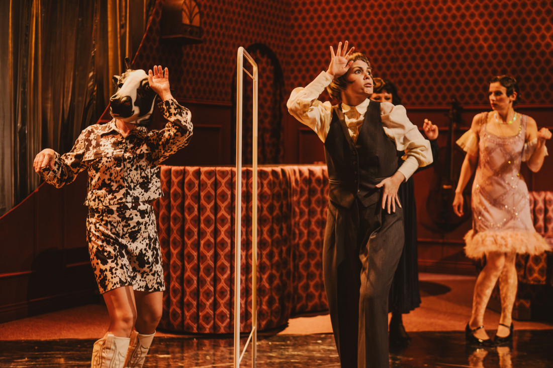 Scenografia Marty Śniosek-Masacz przenosi widza w surrealistyczny świat międzywojennej klubokawiarni — pełen groteskowych detali i rekwizytów nawiązujących do kawiarnianej bohemy. Zgrabnie wpleciono w nią także motywy zwierzęce. Przestrzeń sceny jest niezwykle funkcjonalna — w mgnieniu oka zmienia się w dworzec, kasyno, pociągowy przedział czy gabinet lekarski. Pomagają w tym również kostiumy: zarówno te oddające ducha epoki, jak i bardzo pomysłowe, dowcipne elementy garderoby wprowadzające dodatkowe postacie — owady, marynarzy, sędziów czy żandarmów. Poprzez te „dodatki”, jak np. „trąba” słonia, twórcy puszczają oko do dorosłego widza.