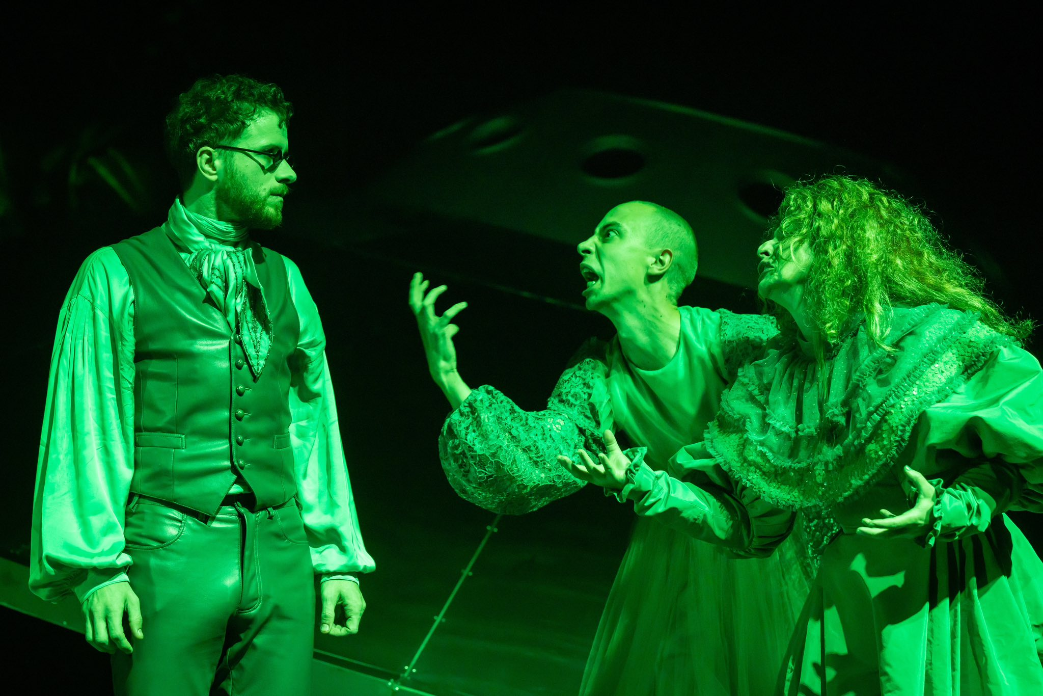 Kolejny raz Liber wprowadza też na scenę zespół muzyczny Nagrobki, którego miałem już przyjemność słuchać w kieleckim „Ale z naszymi umarłymi” czy w fantastycznym „Lepper. Będziemy wisieć albo siedzieć” z Teatru Słowackiego (ten spektakl wylądował nawet na mojej liście najlepszych spektakli 2023 roku). Jest to ponownie strzał w dziesiątkę, bo tak realnie to utwory napędzają to przedstawienie i brutalnie mówiąc, miałem wrażenie, że jest to bardziej teledysk do super muzyki niż pełnoprawny spektakl. W większości piosenek zespołowi z dużą gracją towarzyszą wokalnie aktorzy i jak zawsze wnioskuję o dodanie wszystkiego na Spotify, bo ja chcę i proszę.