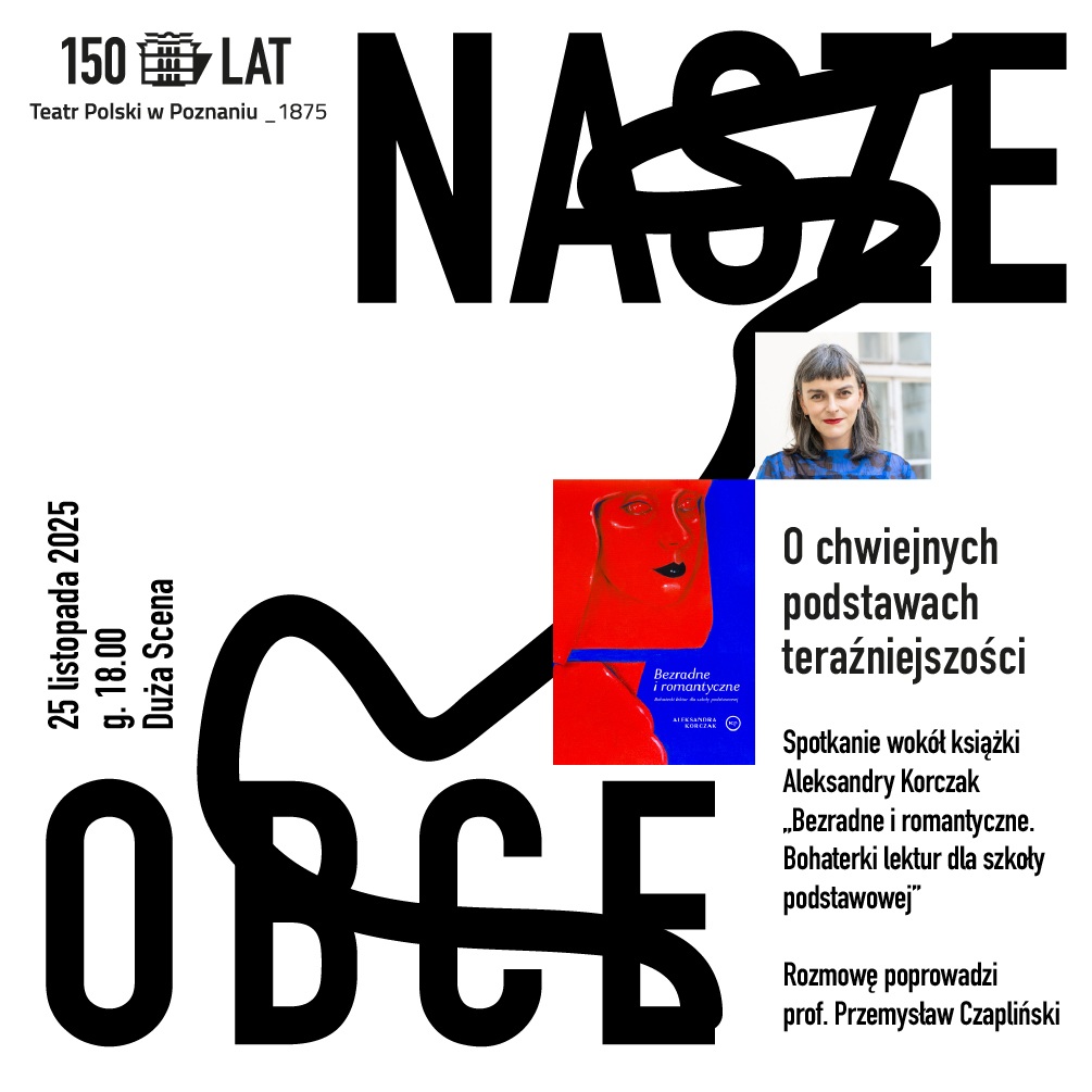 Już 25 listopada na Dużej Scenie Teatru Polskiego w Poznaniu odbędzie się kolejne spotkanie z cyklu „Nasze Obce. O chwiejnych podstawach rzeczywistości”. Tym razem gościnią będzie Aleksandra Korczak, autorka książki „Bezradne i romantyczne. Bohaterki lektur dla szkoły podstawowej”. Rozmowę poprowadzi prof. Przemysław Czapliński.