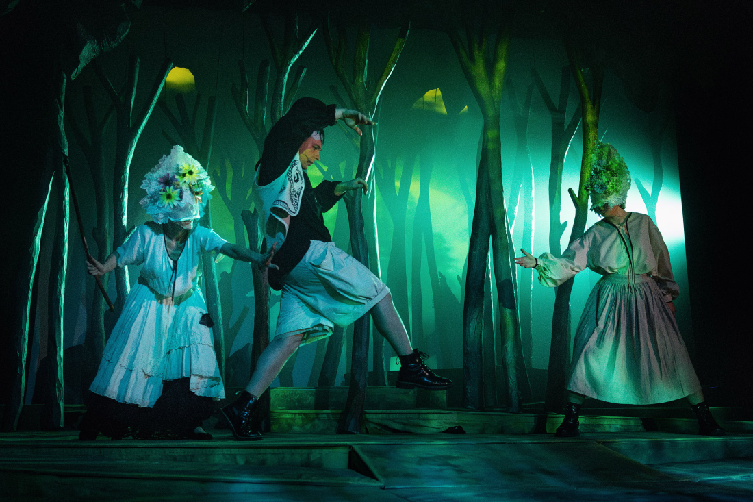 Starsi odbiorcy mogą odnieść wrażenie, że uczestniczą w jakimś rytuale, który prowadzić może młodych ku dorosłości. Ale jak to w rytuale, aby okazał się on skuteczny, młodzi muszą powrócić do społeczności. Zaprezentowano wiele możliwości teatru lalek, by oczarować młodego widza oraz stworzyć dynamiczne, współczesne i mądre przedstawienie. Aktorzy pokazali kunszt, zarówno grając w przepięknych i bardzo pomysłowych kostiumach stworów leśnych (Kwiat Paproci: Dagmara Włoszek-Rabska, Rusałka: Magdalena Obidowska, Skrzat: Ziemowit Ptaszkowski), animując lalki, jak i wcielając się w postacie (Mama: Marta Popławska, Przybyś: Martyna Gajak). Stroje tych ostatnich można uznać prawie za współczesne, może nieco stylizowane na modę rustykalną lub nawiązujące do folkloru.