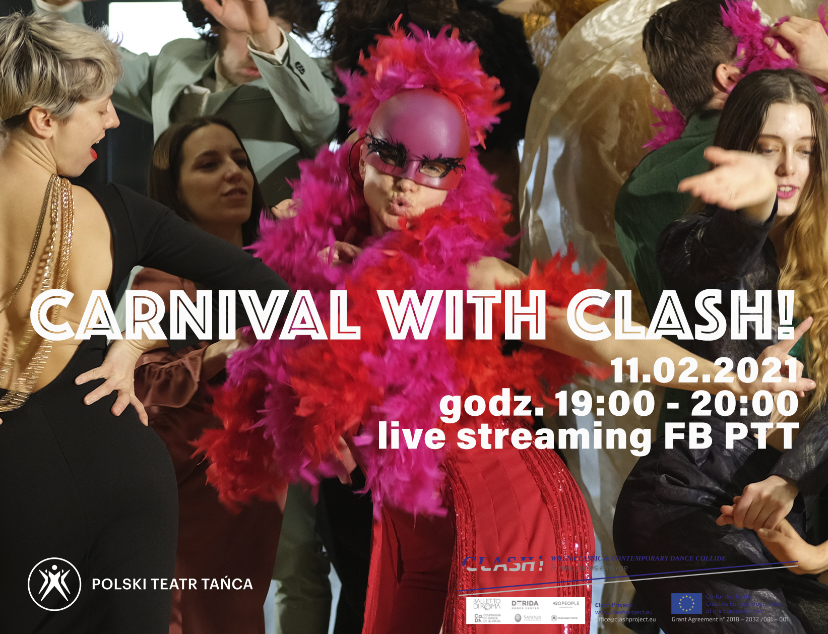 Wydarzenie bezpłatne, odbywa się w ramach projektu "CLASH! When classic and contemporary dance collide and new forms emerge”, który jest współfinansowany z unijnego Programu Kreatywna Europa (Grant Agreement No 2018-2032/001-001).