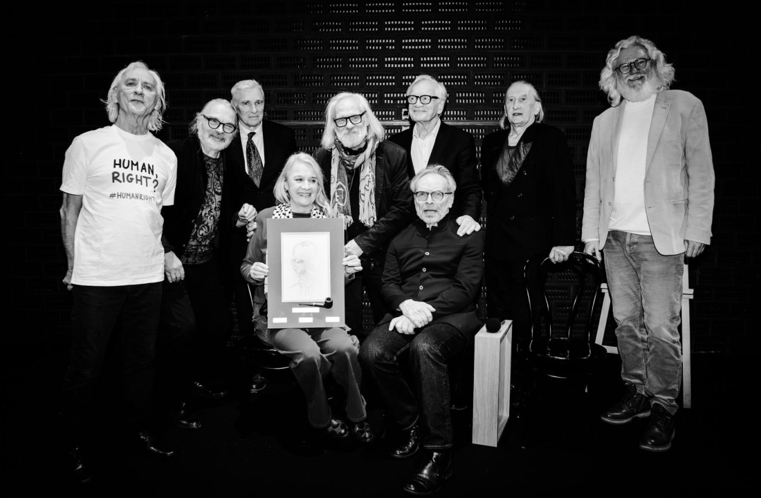 Na zdjęciu od lewej siedzą: Ewa Wójciak z „Fajką Geremka” i Marcin Kęszycki, od lewej stoją: Tadeusz Janiszewski, Jacek Chmaj, Marcin Geremek, Janusz Opryński, Andrzej Seweryn, Adam Borowski i Jarosław Sędziak.