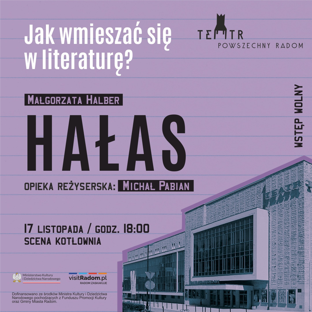 A w najbliższy poniedziałek, 17 listopada o godz. 18.00, zapraszamy na kolejne czytanie performatywne z cyklu „Jak wmieszać się w literaturę?”. Tym razem aktorzy sięgną po książkę Małgorzaty Halber „Hałas”, podejmującą temat współczesnego przeciążenia bodźcami, informacyjnego chaosu i samotności w świecie nieustannego rozproszenia.
