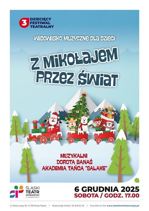Śląski Teatr Impresaryjny im. Henryka Bisty w Rudzie Śląskiej zaprasza 5 i 6 grudnia na widowisko muzyczne dla dzieci, w ramach III Dziecięcego Festiwalu Teatralnego, pt. „Z Mikołajem przez świat”.