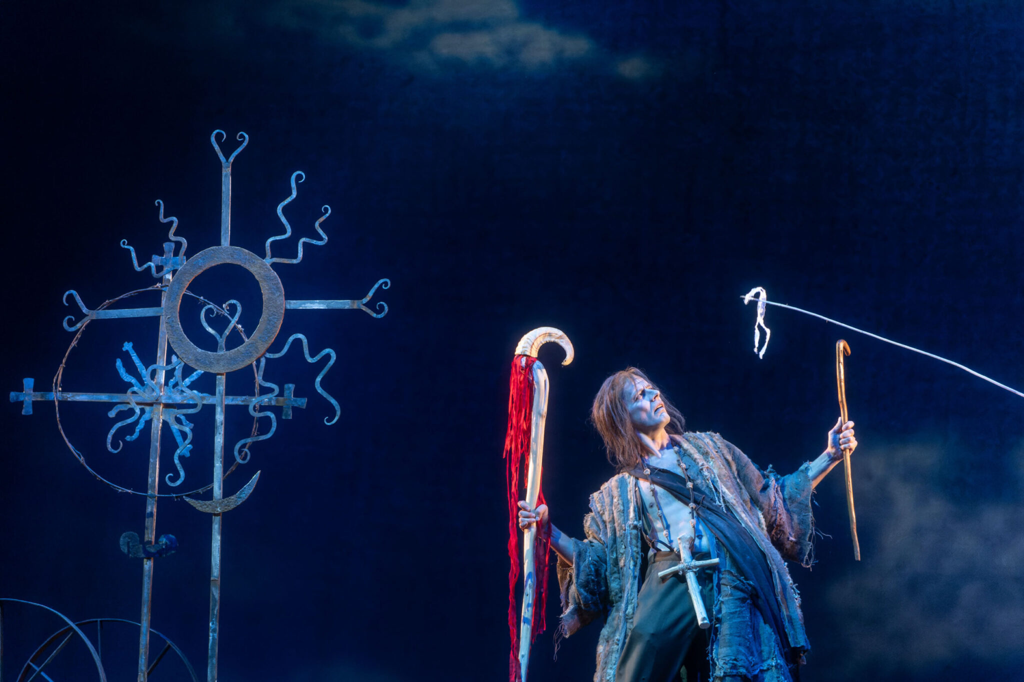 Guślarz Rafała Gąsowskiego „przemawia” głębokim, charyzmatycznym głosem Krzysztofa Szyfmana. Obaj pozwalają spojrzeć na tę znaną postać z innej perspektywy. Znakomita, wyrazista, autentyczna rola Gąsowskiego rezonuje z mocą głosu solisty. Podobnie w kolejnych scenach – niespiesznych, wysmakowanych. Duet aniołków — Józi i Rózi — w delikatnym wykonaniu Katarzyny Ogrodniczak i Urszuli Raczkowskiej został równie subtelnie wyśpiewany przez Arletę Krutul i Monikę Klepacką. Złowieszcze Widmo Dziedzica, zwanego Złym Panem, w interpretacji jak zawsze znakomitego Dariusza Matysa, otrzymuje głos Macieja Nerkowskiego. Pieśń śpiewaka idealnie splata się z kreacją, lecz okrutny szlachcic najpełniej wybrzmiewa dzięki aktorowi. Przygnieciona cierpieniem Wdowa Magdaleny Dąbrowskiej płynnie łączy ruch sceniczny z arią w mocnym wykonaniu Anny Wolfinger, a Adrian Jakuć-Łukaszewicz – z Leszkiem Gaińskim. W kolejnej odsłonie uwagę przykuwają dwie kobiety: Katarzyna Wolak-Gąsowska jako Pasterka – wzruszająca w zmysłowym tańcu, z lekkim odcieniem groteski – oraz obdarzona dźwięcznym głosem Monika Ziółkowska. Odmienny, zgodny z pierwowzorem charakter ma postać Młodzieńca Bartłomieja Bazyluka: milcząca, a jakże wymowna.