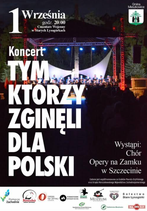 1 września z okazji rocznicy wybuchu II wojny światowej chór Opery na Zamku w Szczecinie pod batutą Małgorzaty Bornowskiej wystąpi z koncertem „Tym, którzy zginęli dla Polski” na Cmentarzu Wojennym w Starych Łysogórkach w gminie Mieszkowice. Koncert odbędzie się o 20.00. Serdecznie zapraszamy.