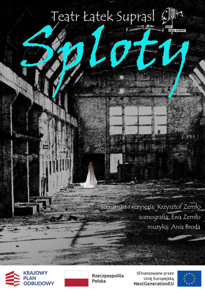 Spektakl „Sploty” to autorski monodram Krzysztofa Zemły. W wielkiej, tętniącej życiem fabryce wydarzyła się kiedyś tragedia. Nie do końca poznajemy jej przyczyny. Wielkie emocje , nieszczęśliwa miłość…. co dziś z tego zostało? W przepastnej przeszłości przepadli bohaterowie historii, co więcej nie ma już samej fabryki. Pozostało po tym wszystkim zaledwie parę przedmiotów i opowieść. Wszystko lub niemal wszystko jest przeszłością.