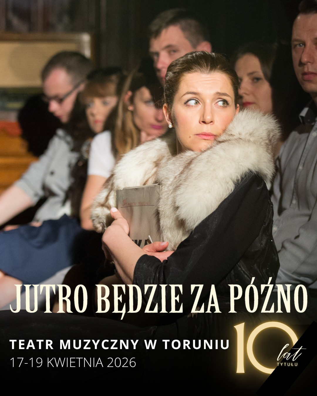 To jeden z tych spektakli, które nie tracą swojej siły mimo upływu lat. „Jutro będzie za późno” - poruszająca opowieść o życiu Wiery Gran - obchodzi w tym roku 10. rocznicę swojej obecności na scenie Teatru Muzycznego w Toruniu. Od dekady przedstawienie powraca do widzów, niezmiennie wzbudzając emocje, zachwyt i refleksję. Ten wielokrotnie nagradzany tytuł ponownie będzie można zobaczyć 17, 18 i 19 kwietnia.