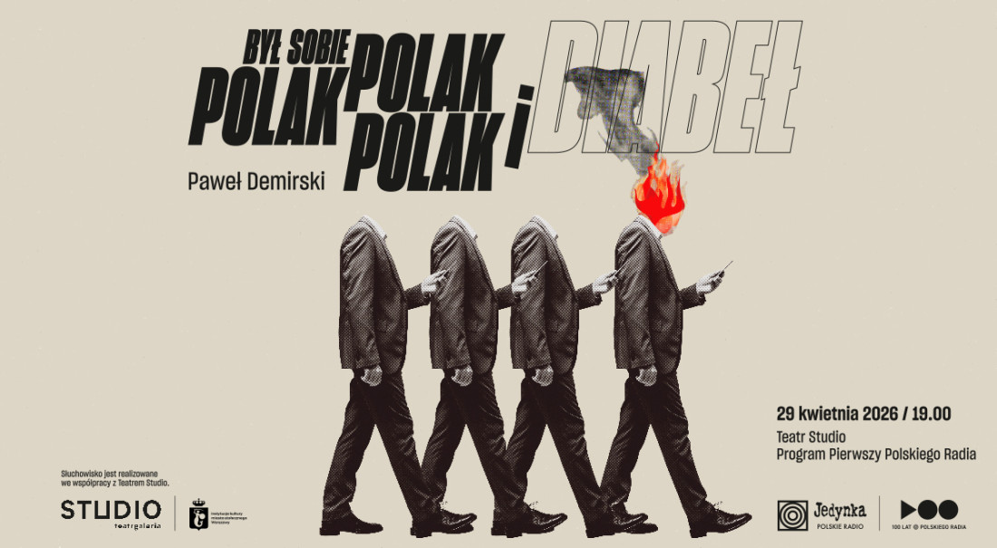 29 kwietnia Polskie Radio i Teatr STUDIO zapraszają na wyjątkowe wydarzenie, łączące teatr i radio w niepowtarzalnej formie. Publiczność będzie mogła wziąć udział w realizowanym na żywo słuchowisku „BYŁ SOBIE POLAK POLAK POLAK I DIABEŁ czyli w heroicznych walkach narodu polskiego wszystkie sztachety zostały zużyte” Pawła Demirskiego. Bezpośrednio po słuchowisku, ze sceny Teatru STUDIO prowadzona będzie audycja z udziałem gości. Wydarzenie wpisuje się w obchody stulecia Programu 1 Polskiego Radia i będzie transmitowane na antenie Jedynki.