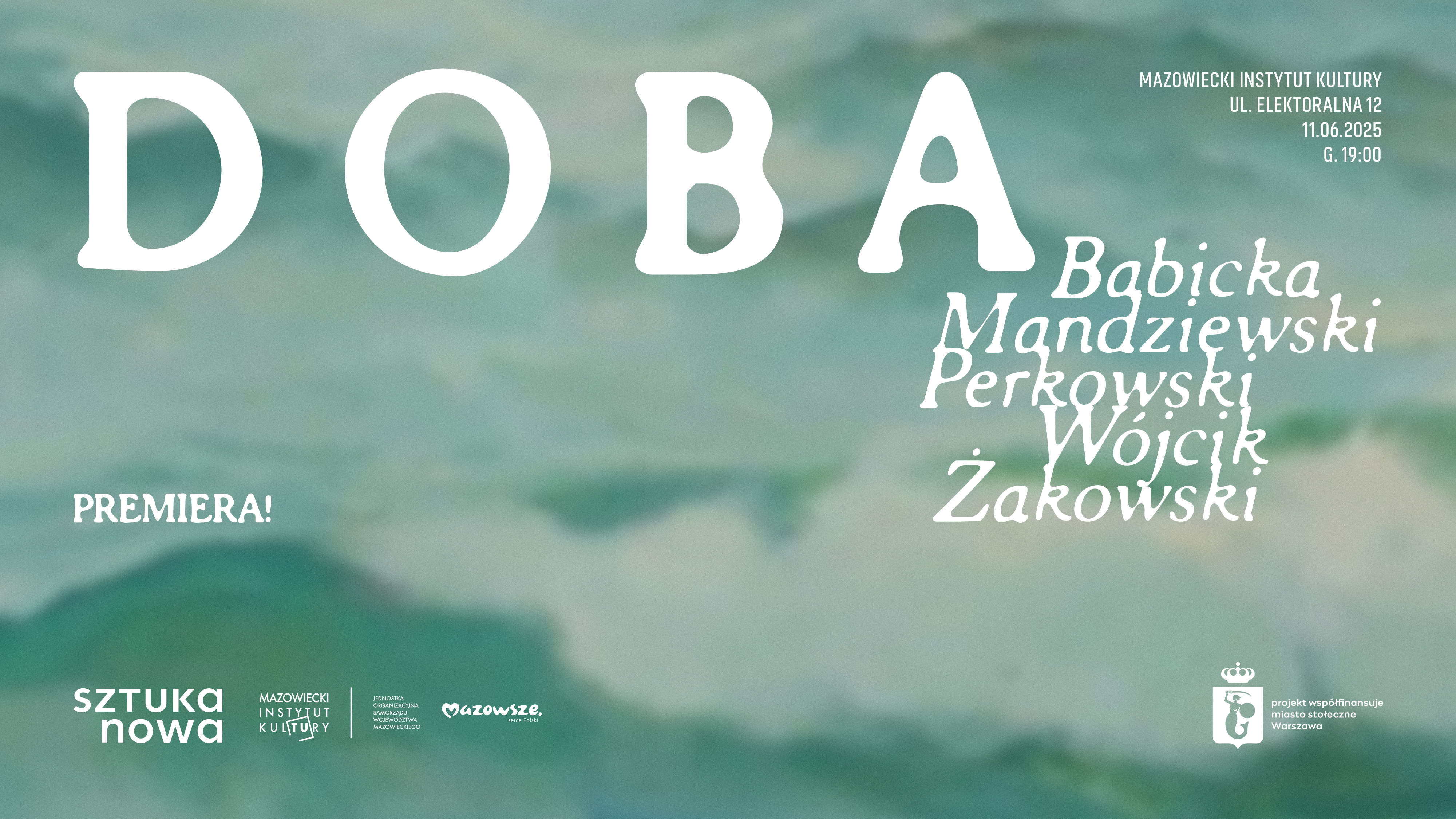 Pokazy spektaklu "Doba" realizowane są w ramach projektu Repertuar Sztuki Nowej 2023-2025 w cyklu Debiuty SN, który jest współfinansowany przez Miasto Stołeczne Warszawa w partnerstwie z Mazowieckim Instytutem Kultury w Warszawie.