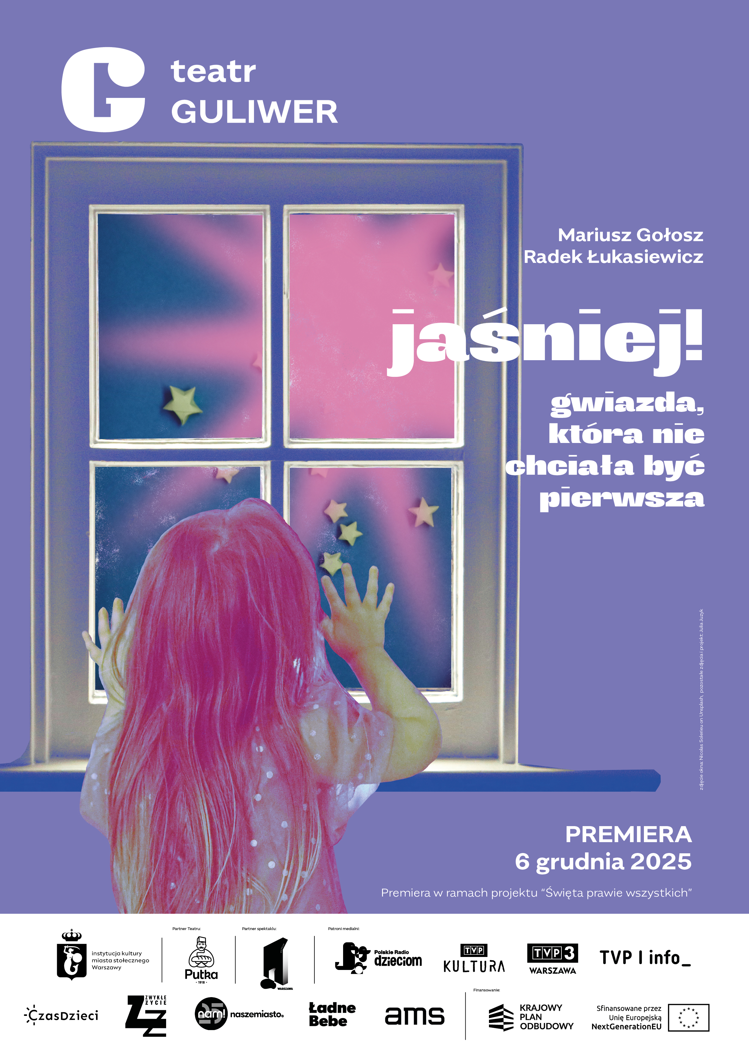 Teatr Lalek Guliwer zaprasza na pierwszą premierę w sezonie - sztukę wielokrotnie nagradzanego dramatopisarza Mariusza Gołosza „jaśniej! gwiazda, która nie chciała być pierwsza” w reżyserii Roberta Drobniucha z muzyką Radka Łukasiewicza. Premiera spektaklu odbędzie się 6 grudnia na deskach Dużej Sceny.