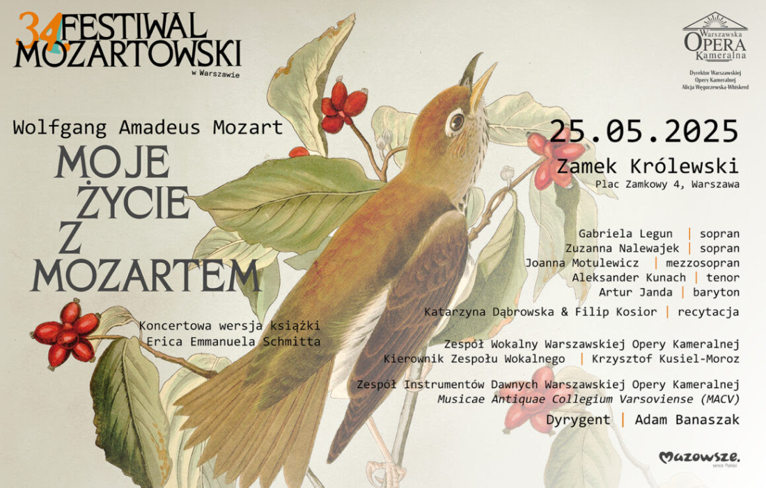 Warszawska Opera Kameralna zaprasza w najbliższą sobotę na wyjątkowe wydarzenie muzyczne w sercu Warszawy – koncertową wersję książki Érica-Emmanuela Schmitta „Moje życie z Mozartem”, wzbogaconą o arcydzieła wokalne i instrumentalne Wolfganga Amadeusa Mozarta.