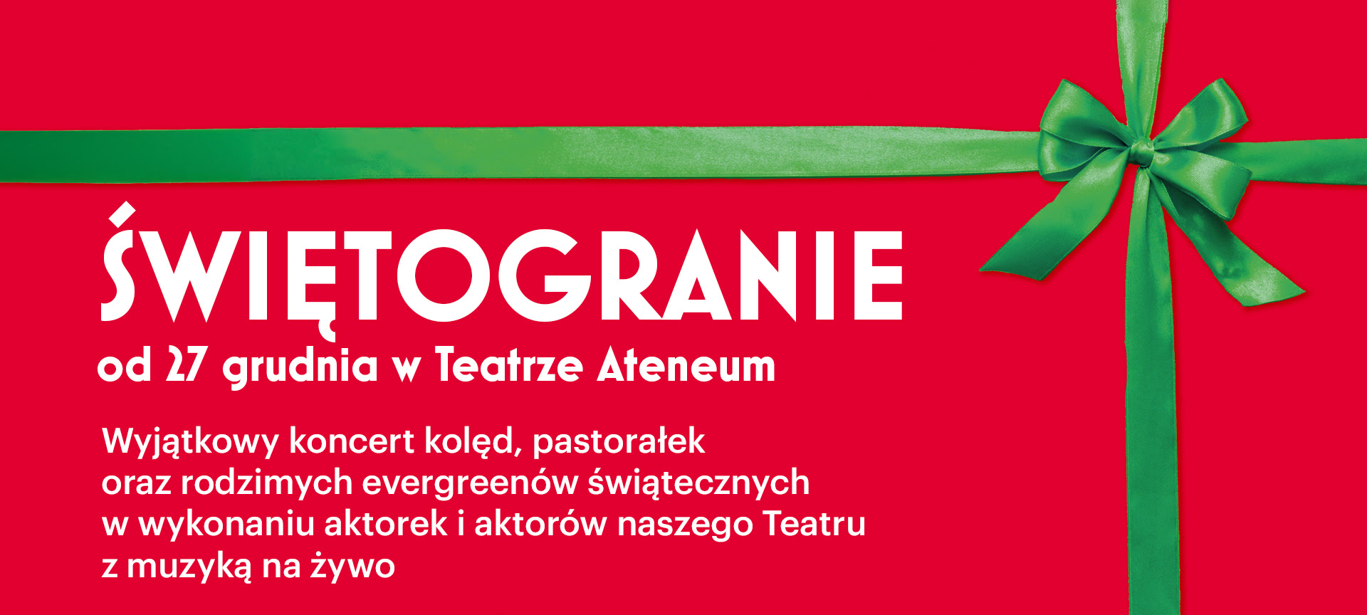 Święta to wyjątkowy czas i dlatego zapraszamy do Ateneum na jedyne w swoim rodzaju „Świętogranie”. To koncert kolęd, pastorałek oraz popularnych rodzimych evergreenów świątecznych w wykonaniu aktorek i aktorów naszego Teatru, którym towarzyszyć będzie grana na żywo muzyka w wykonaniu orkiestry kameralnej.